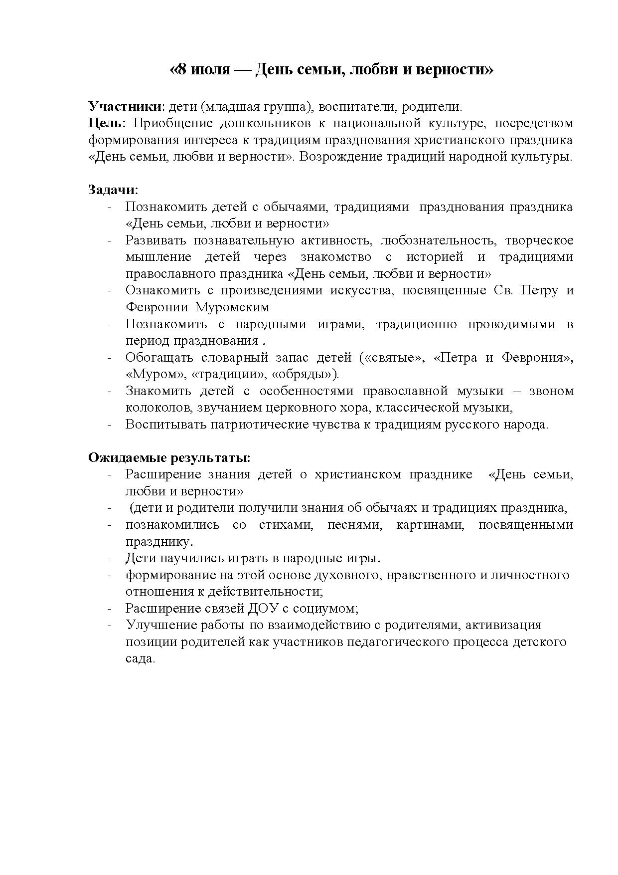 - Познакомить детей с обычаями, традициями празднования праздника «День семьи, любви и верности»