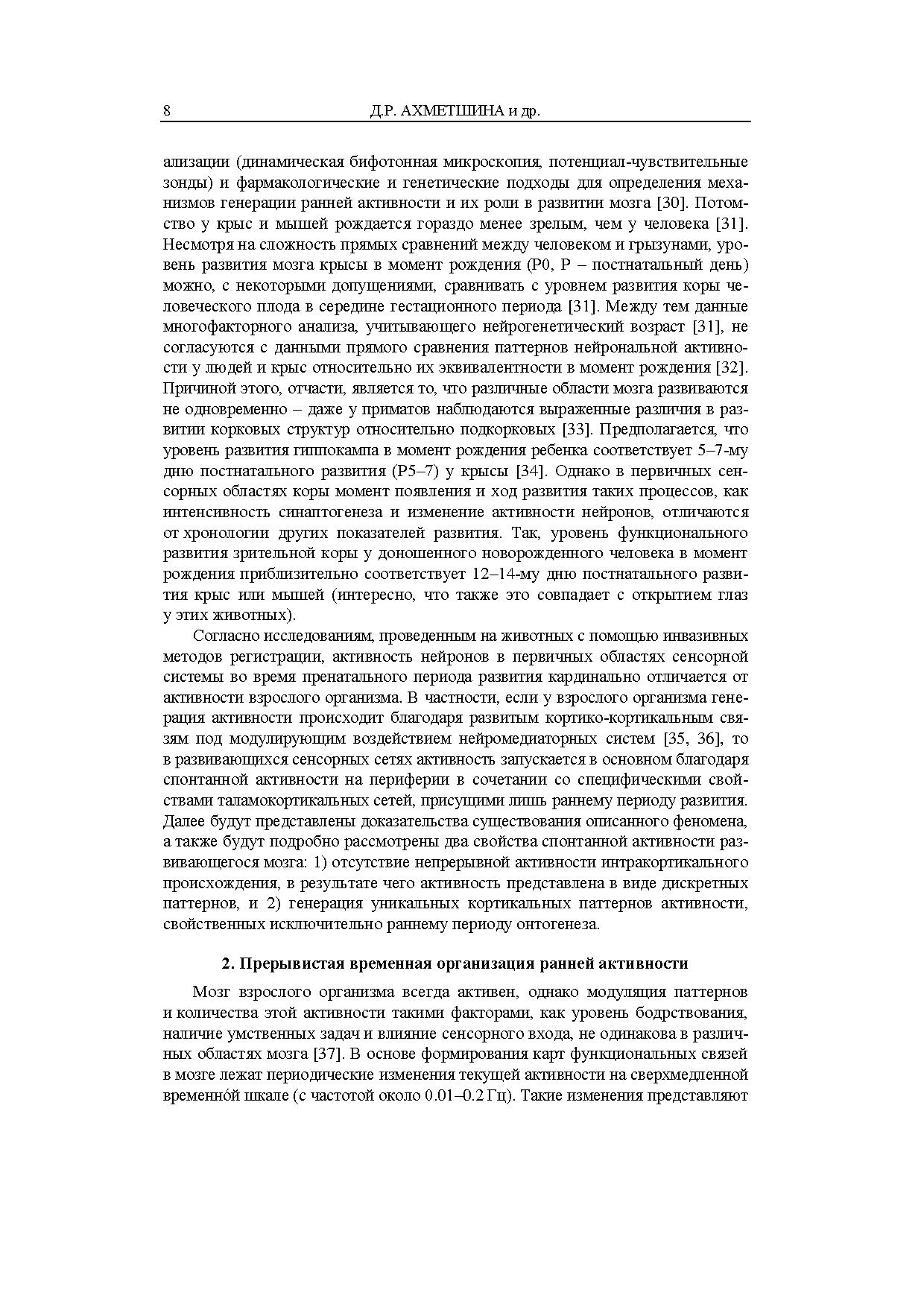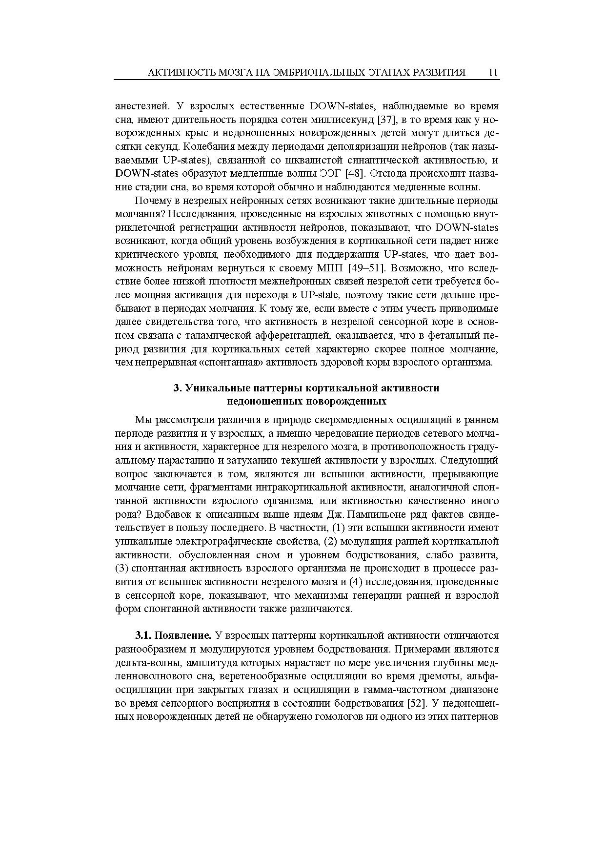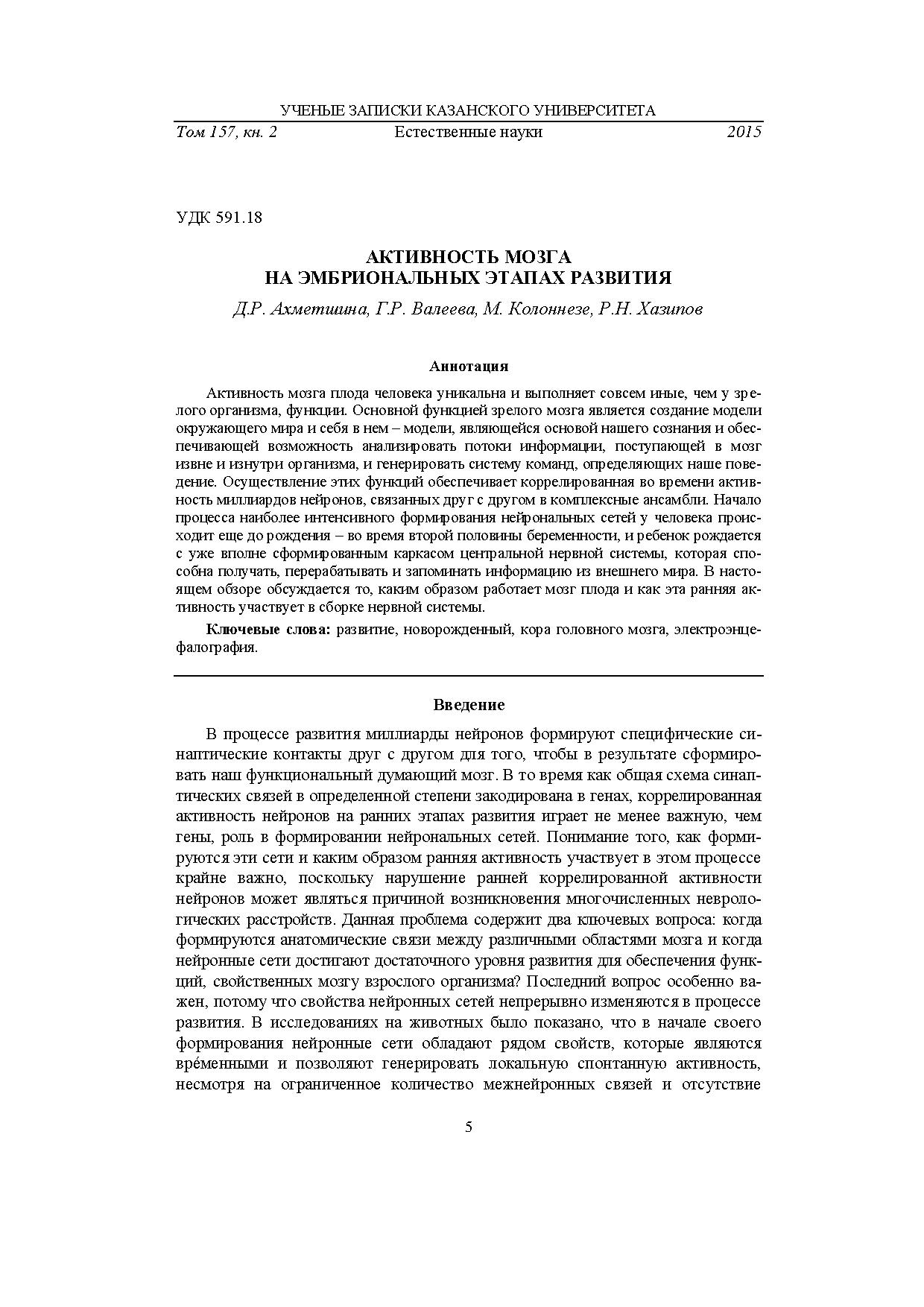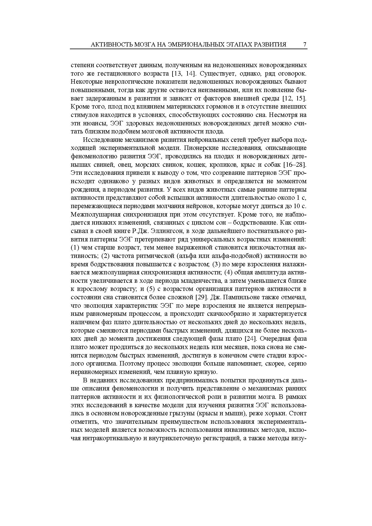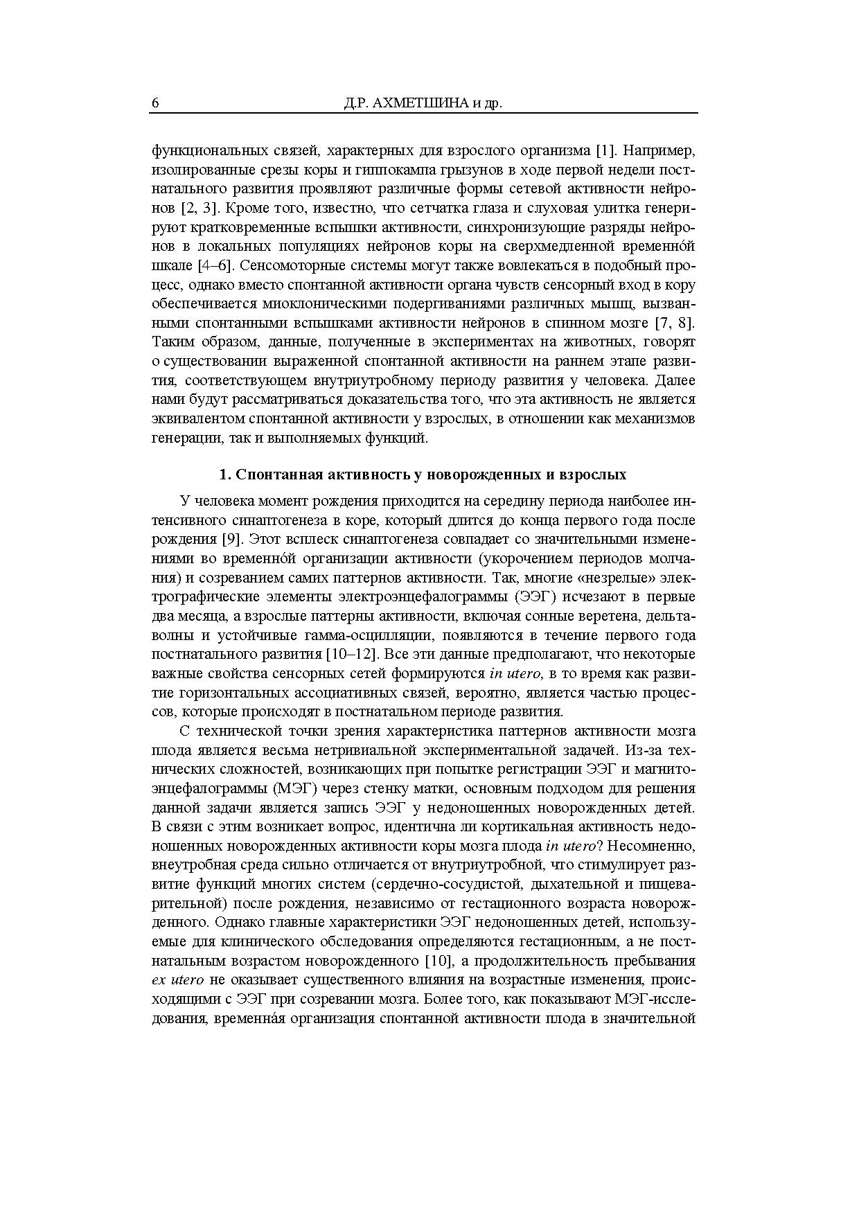Основной функцией зрелого мозга является создание модели окружающего мира и себя в нем – модели, являющейся основой нашего сознания и обеспечивающей возможность анализировать потоки информации, поступающей в мозг извне и изнутри организма, и генерировать систему команд, определяющих наше поведение. Осуществление этих функций обеспечивает коррелированная во времени активность миллиардов нейронов, связанных друг с другом в комплексные ансамбли. Начало процесса наиболее интенсивного формирования нейрональных сетей у человека происходит еще до рождения – во время второй половины беременности, и ребенок рождается с уже вполне сформированным каркасом центральной нервной системы, которая способна получать, перерабатывать и запоминать информацию из внешнего мира.