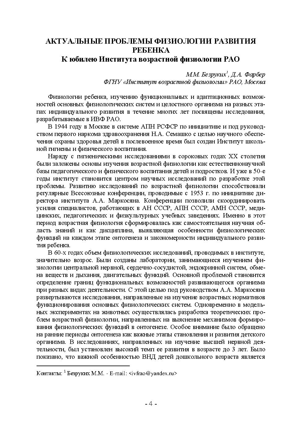 Физиологии ребенка, изучению функциональных и адаптационных возможностей основных физиологических систем и целостного организма на разных этапах индивидуального развития в течение многих лет посвящены исследования, разрабатываемые в ИВФ РАО.