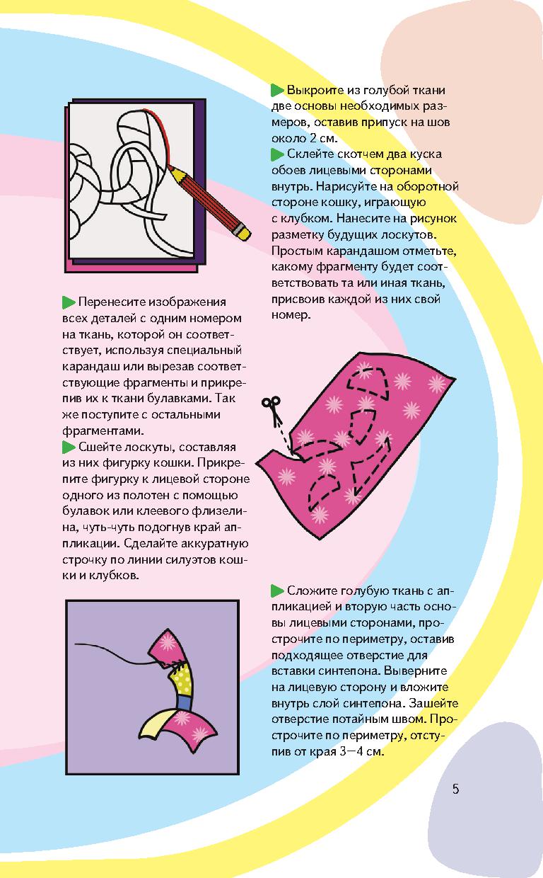 Здесь вы найдете множество идей по изготовлению оригинальных одеял, декоративных панно, украшению сумок и детской одежды. А яркие иллюстрации и пошаговые инструкции помогут вам.