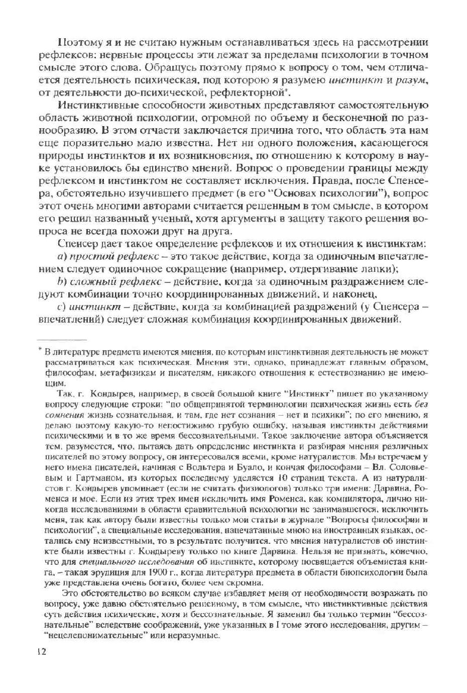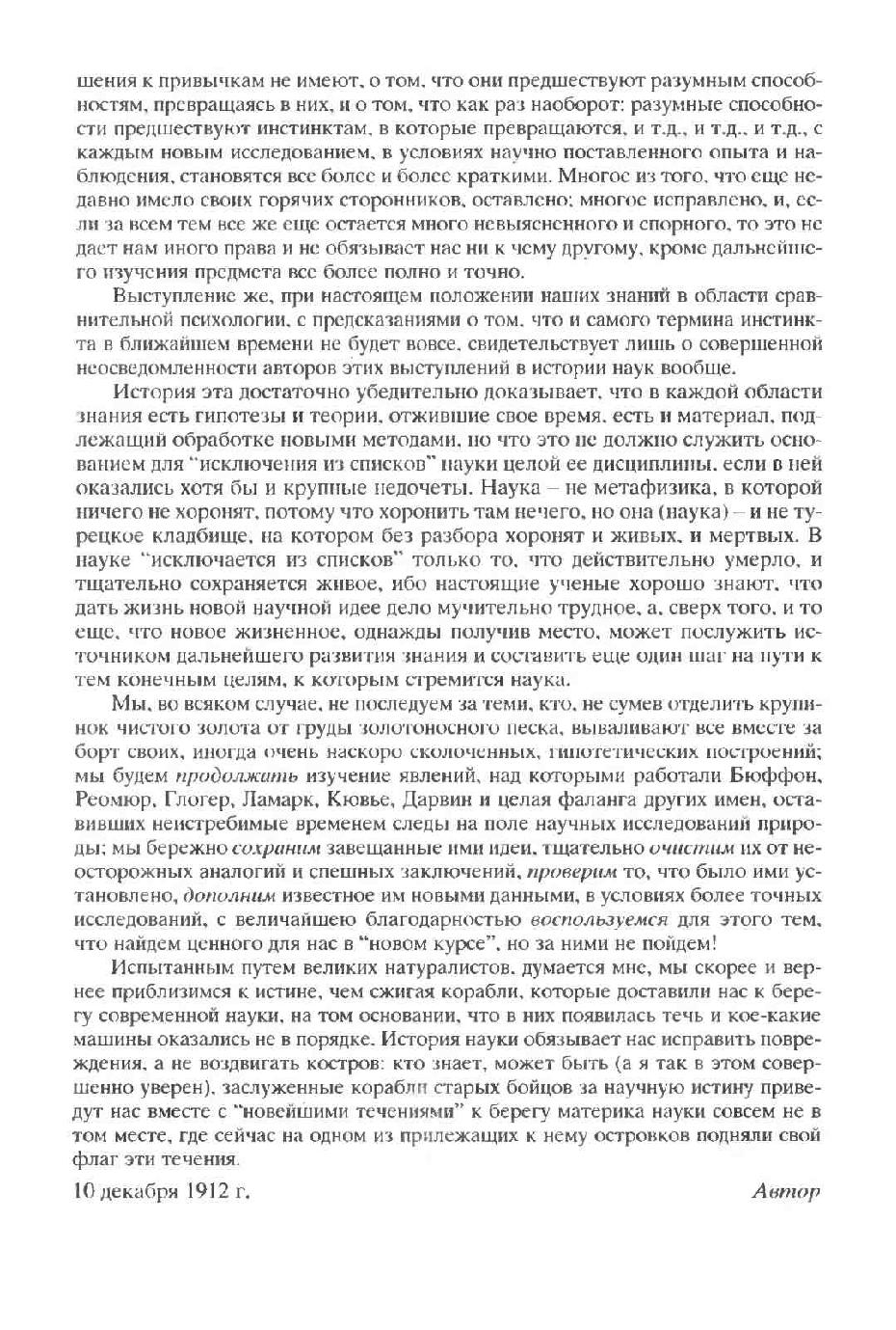 Вскрывается коренное различие биологически обусловленного видового поведения животного и социально-исторически детерминированного развития психики человека, обосновываются методы объективного исследования проблем зоопсихологии и эволюционной психологии. Дается всестороннее и яркое описание соотношения природы рефлекса, инстинкта, привычек и разума и специфики поведения человека.