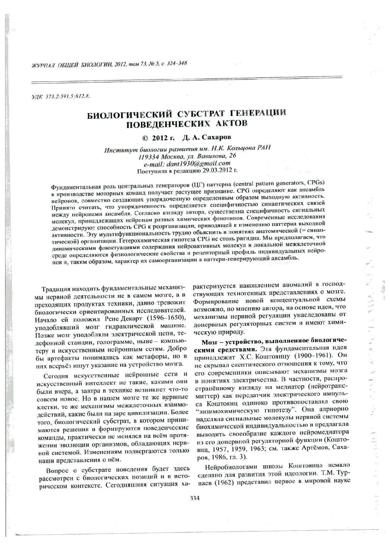 Фундаментальная роль центральных генераторов (ЦГ) паттерна (central pattern generators, CPGs) в производстве моторных команд получает растущее признание.