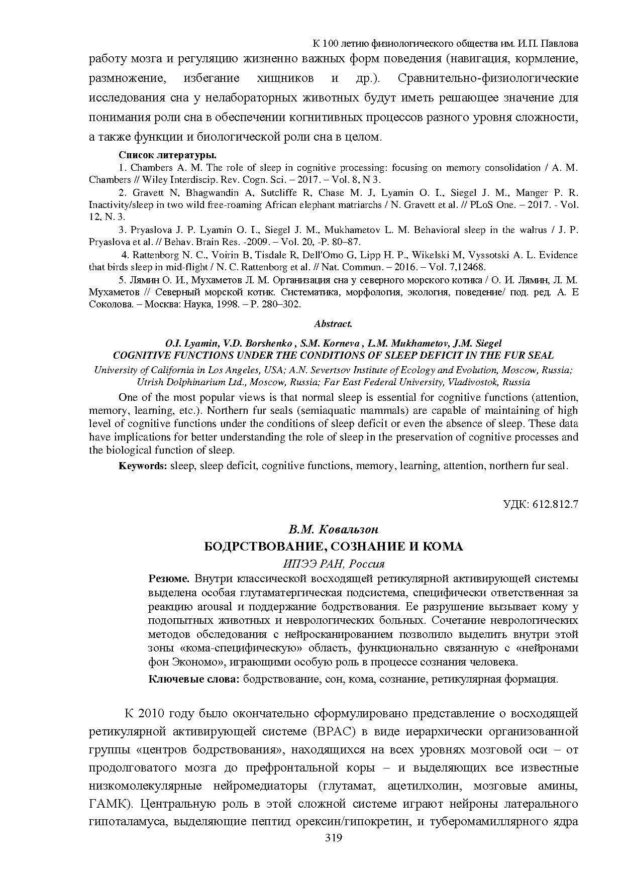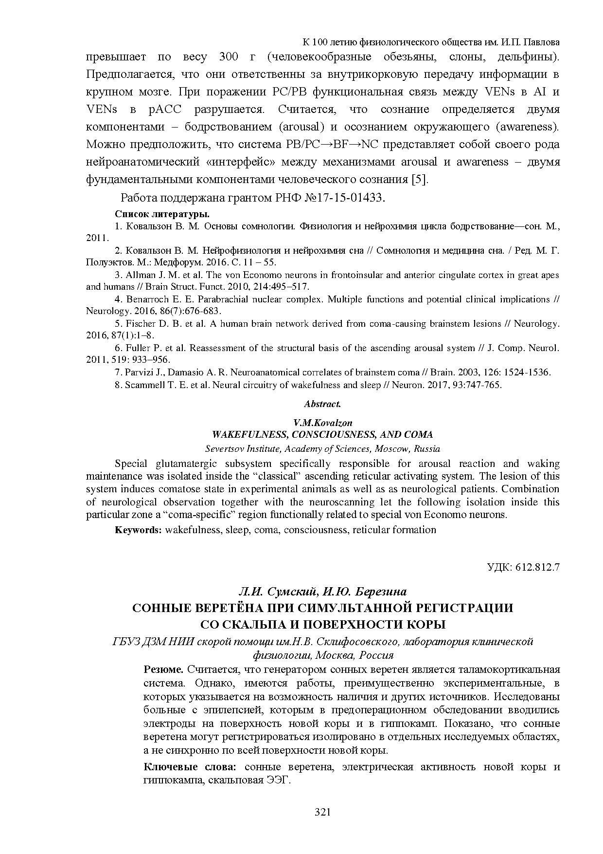 Внутри классической восходящей ретикулярной активирующей системы выделена особая глутаматергическая подсистема, специфически ответственная за реакцию arousal и поддержание бодрствования. Ее разрушение вызывает кому у подопытных животных и неврологических больных.