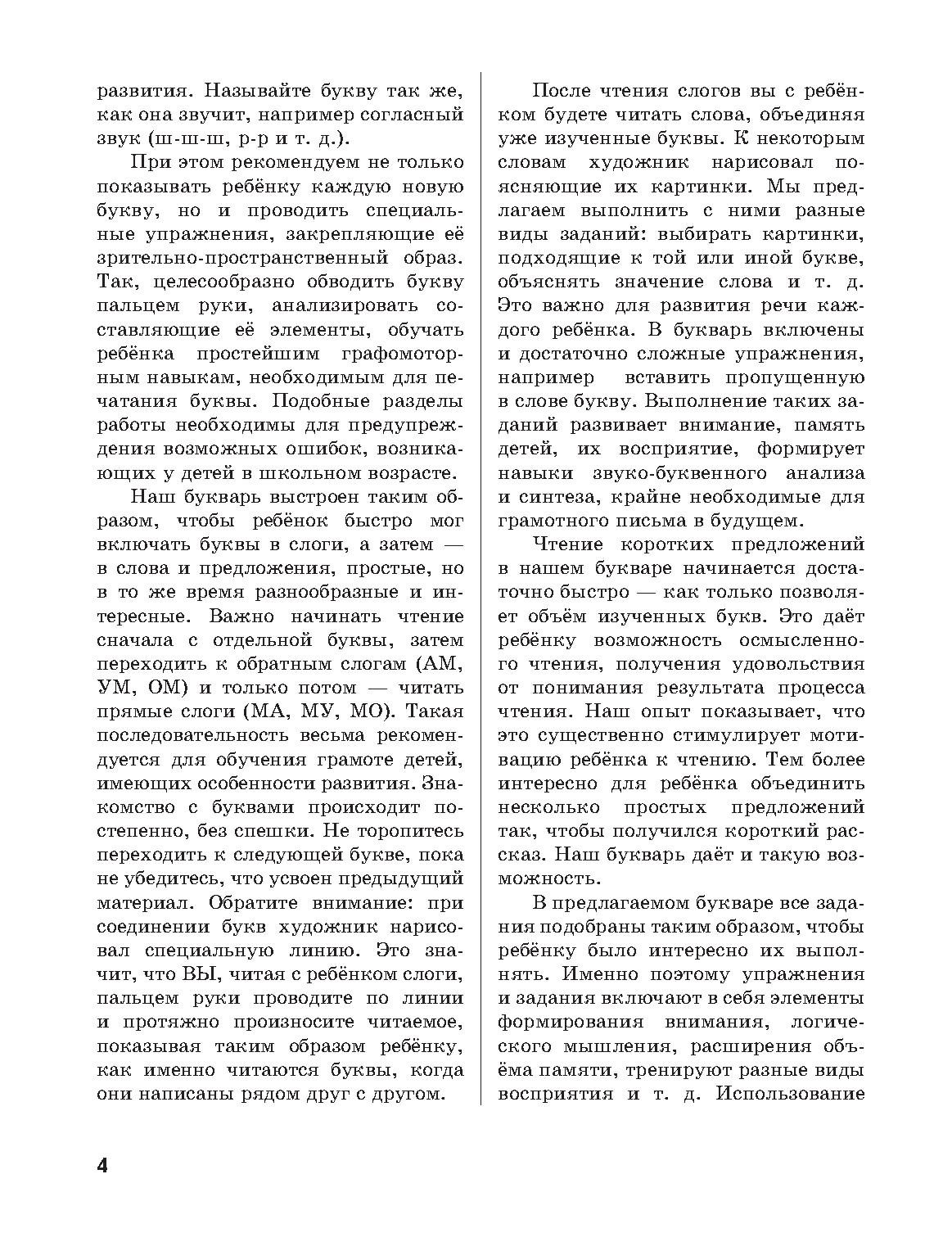 Букварь поможет параллельно овладеть звуками и буквами и сформировать навыки письма. Сочетание заданий с упражнениями на развитие мышления, памяти и восприятия помогут не только обучить грамоте, но и предупредить потенциальные ошибки в школьном возрасте. Букварем просто пользоваться, он вызывает неизменный интерес к занятиям у детей.