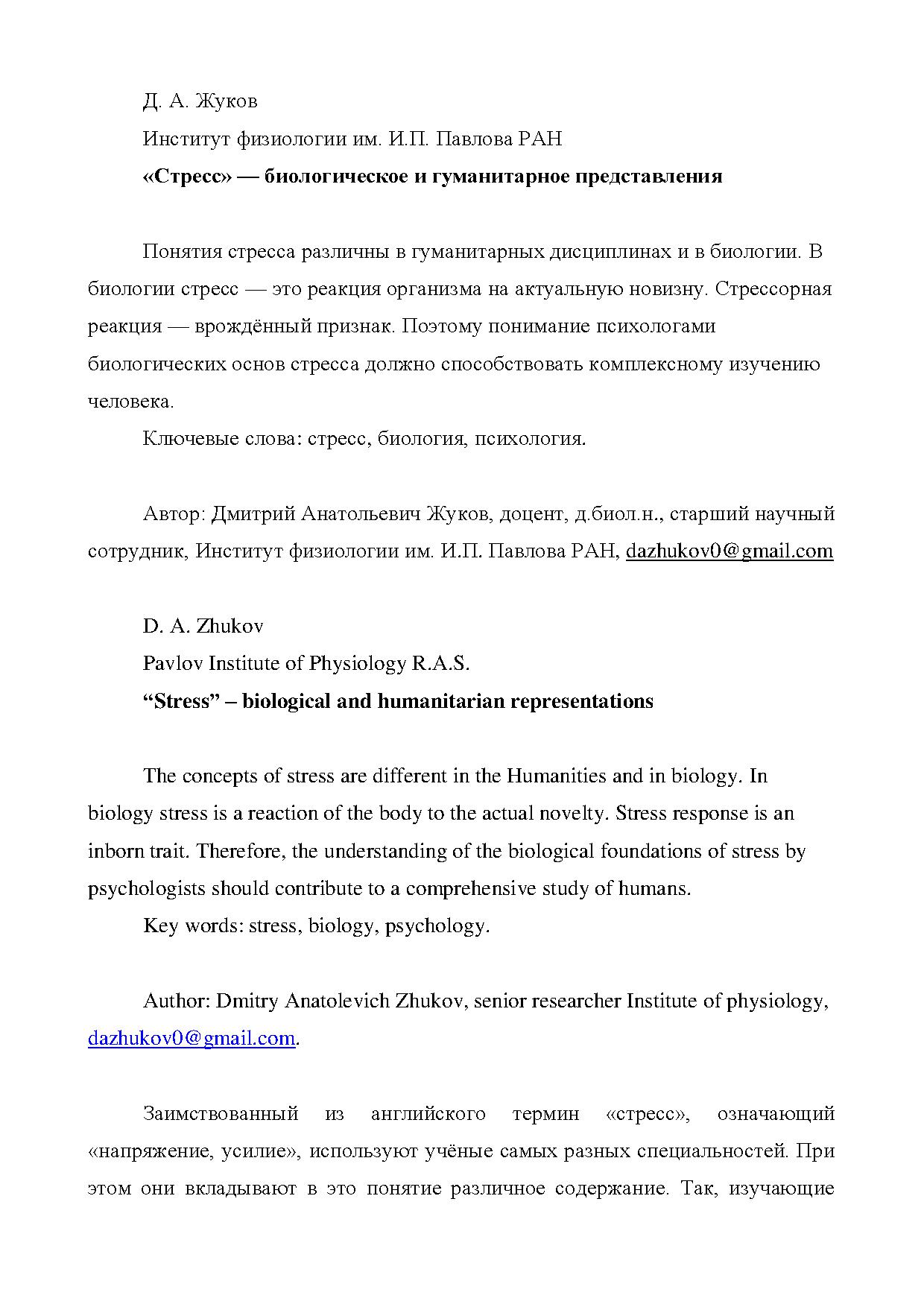 Понятия стресса различны в гуманитарных дисциплинах и в биологии.