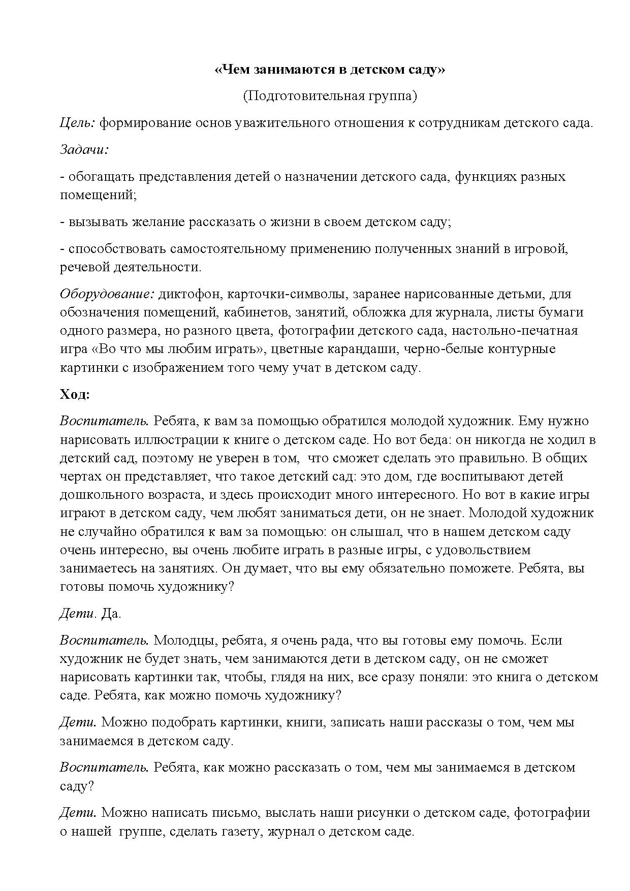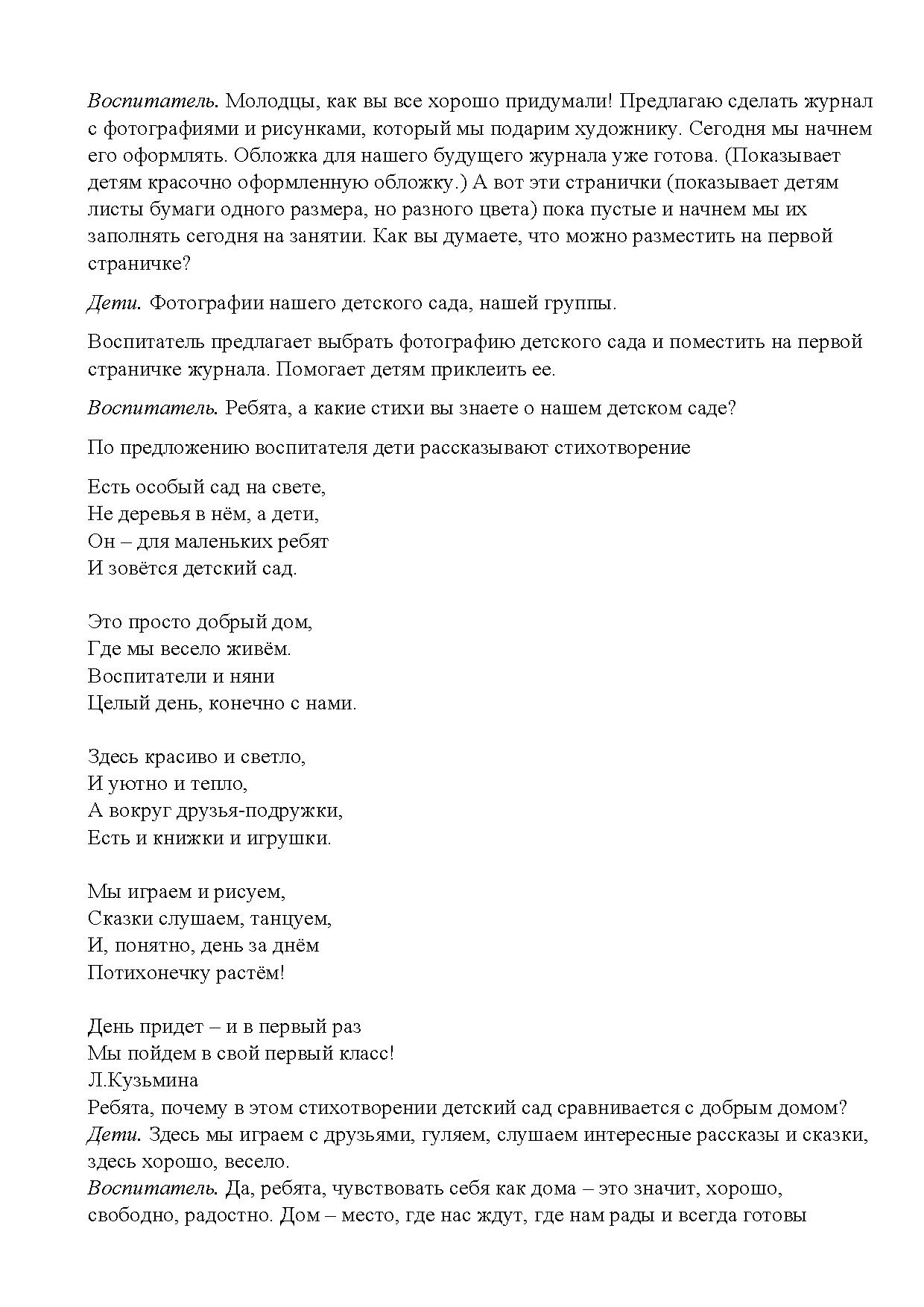 - вызывать желание рассказать о жизни в своем детском саду;