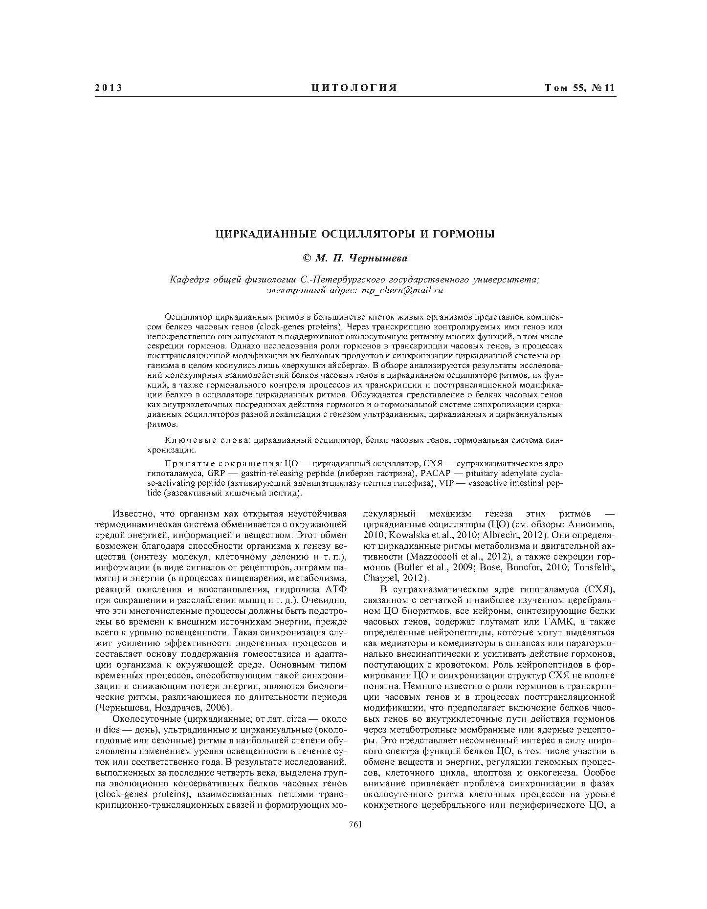 Осциллятор циркадианных ритмов в большинстве клеток живых организмов представлен комплексом белков часовых генов (clock-genes proteins).
