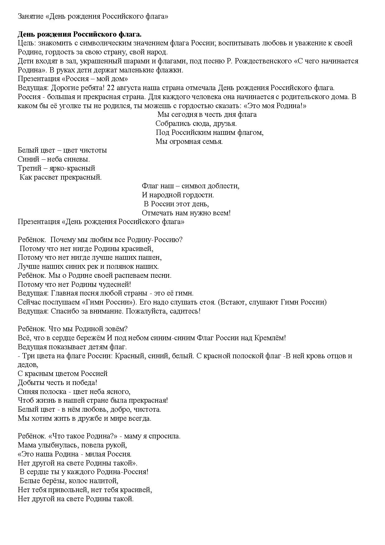 Цель: знакомить с символическим значением флага России; воспитывать любовь и уважение к своей Родине, гордость за свою страну, свой народ.