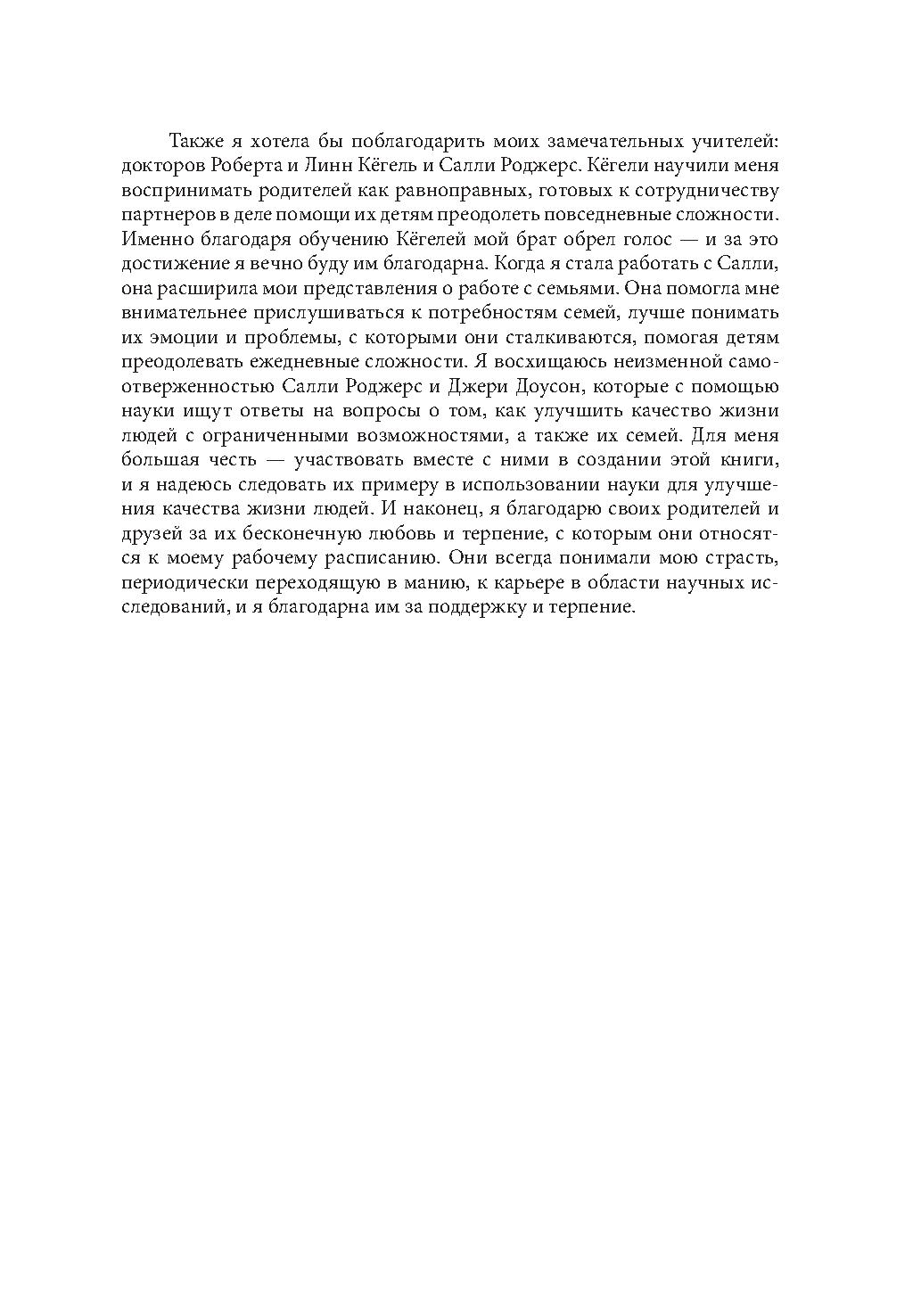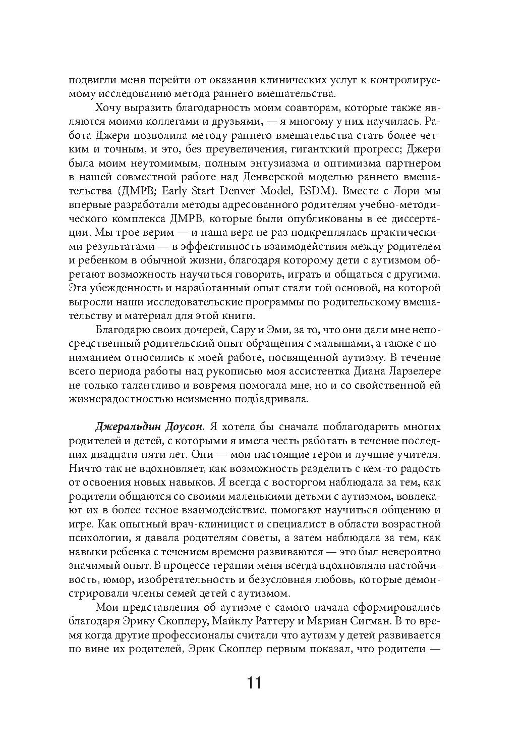 Денверская модель раннего вмешательства — широко применяемая в мире и показавшая высокую результативность методика помощи детям с аутизмом и РАС. Основу этой методики составляют стратегии, которые трансформируют практически любые повседневные дела, процедуры и режимные моменты в эффективные техники игрового взаимодействия, общения и обучения. Данная книга рассказывает о том, как, используя Денверскую модель раннего вмешательства, адаптированную специально для родителей особых детей, помочь своему ребенку справляться с имеющимися затруднениями и шаг за шагом переходить на новые ступени овладения социальными навыками. Эффективность данной методики подтверждена многолетними научными исследованиями и практическими результатами.