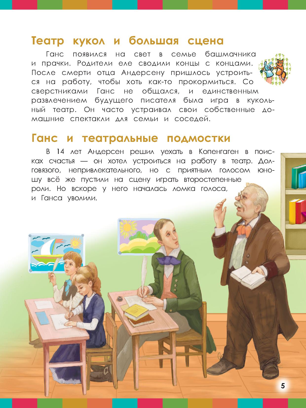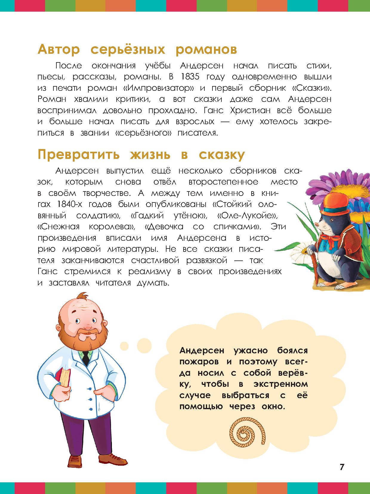 На каждом развороте можно увидеть портрет писателя и краткую основную информацию о нем. Реальные захватывающие истории о детстве или смешные случаи из жизни великих людей, написанные простым, понятным языком, будут интересны ребенку и помогут живее представить образы знаменитых писателей, пробудить интерес к чтению их произведений.