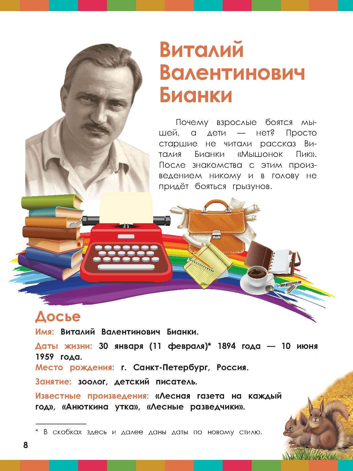 В книгу вошли интересные биографические материалы о знаменитых русских и зарубежных писателях, авторах произведений для детей — А. Пушкине, Л. Толстом, В. Бианки, А. Чехове, И. Крылове, Н. Носове, С. Маршаке, К. Чуковском, В. Маяковском, В. Драгунском, К. Паустовском, Г.-Х. Андерсене, Р. Киплинге, Д. Родари и М. Твене.