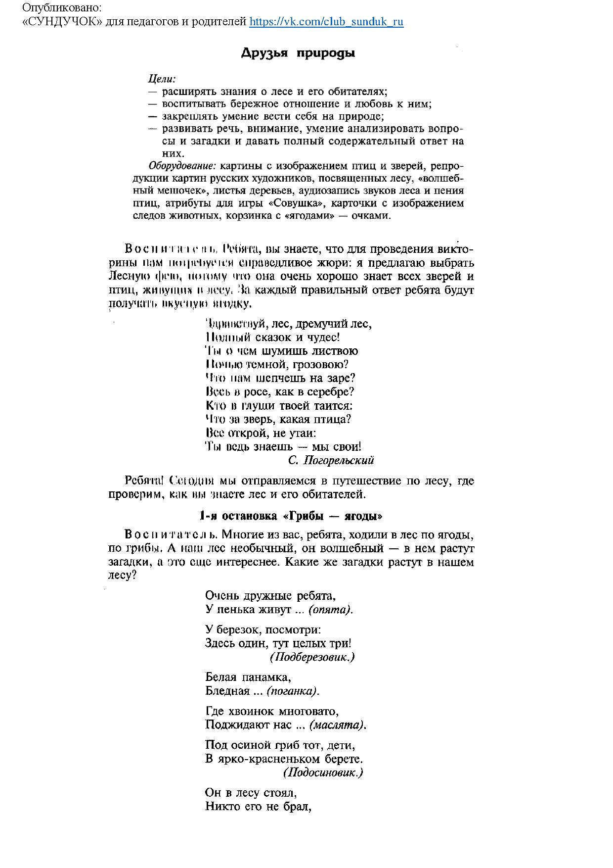 Воспитывать любовь и бережное отношение к природе.