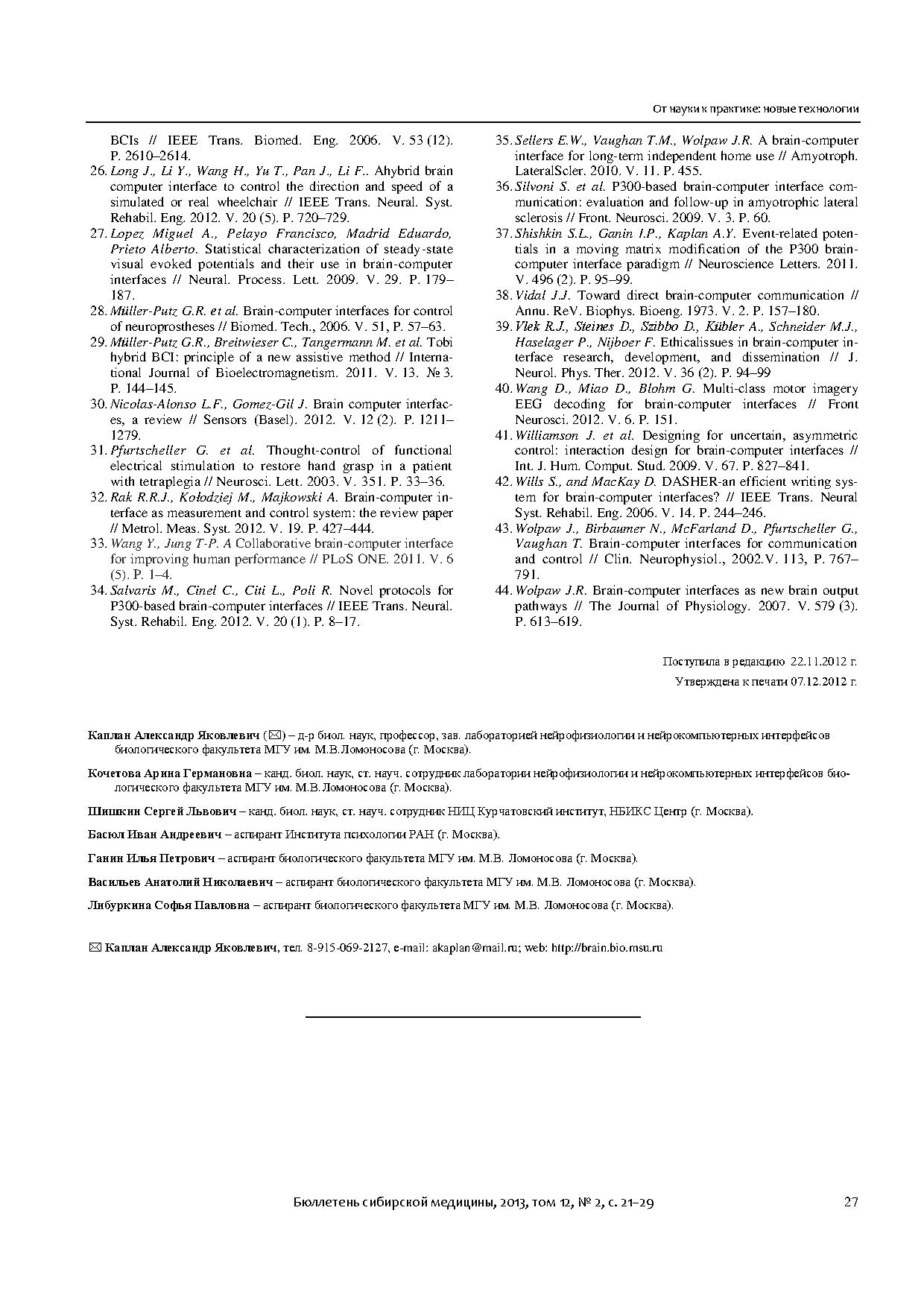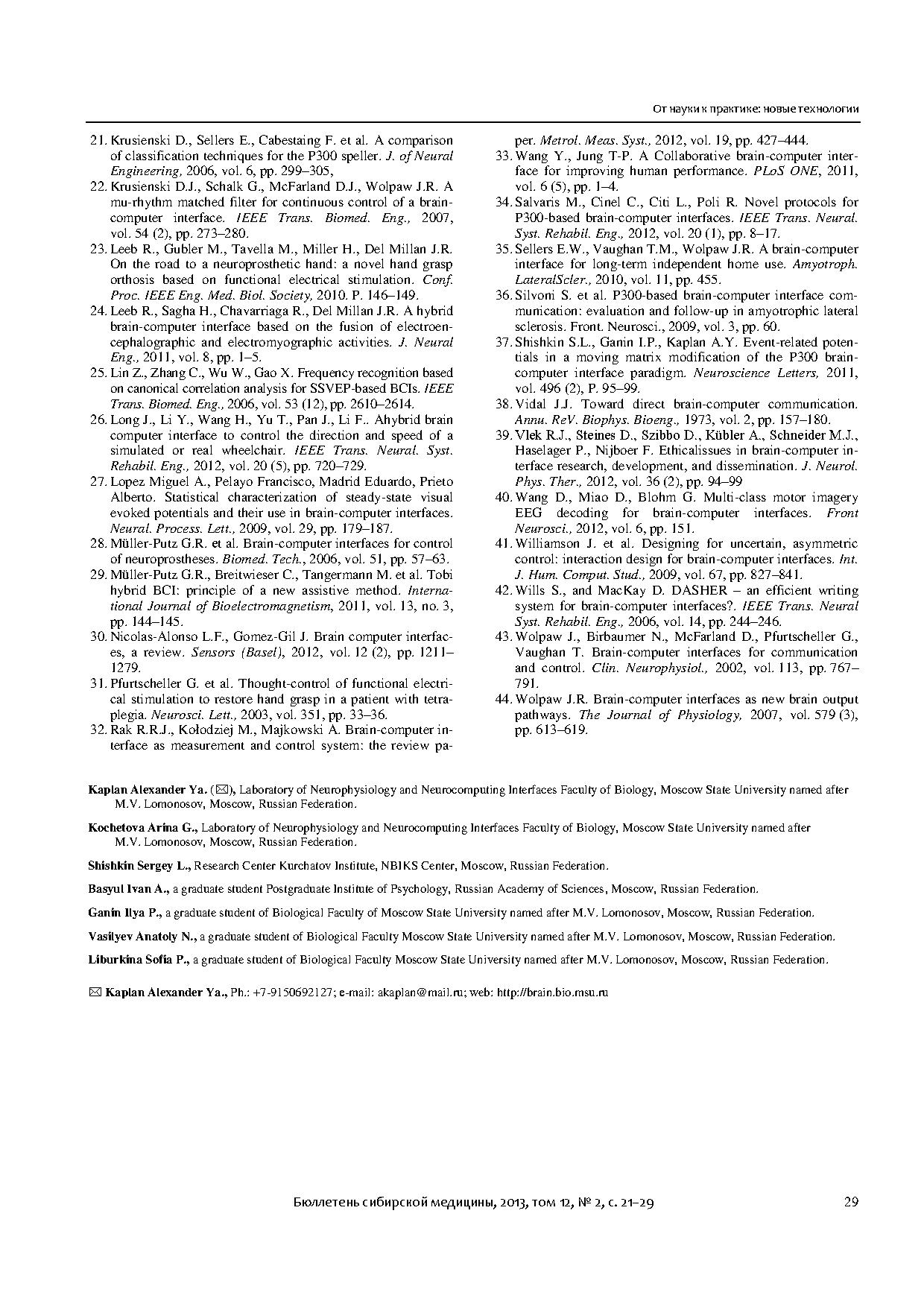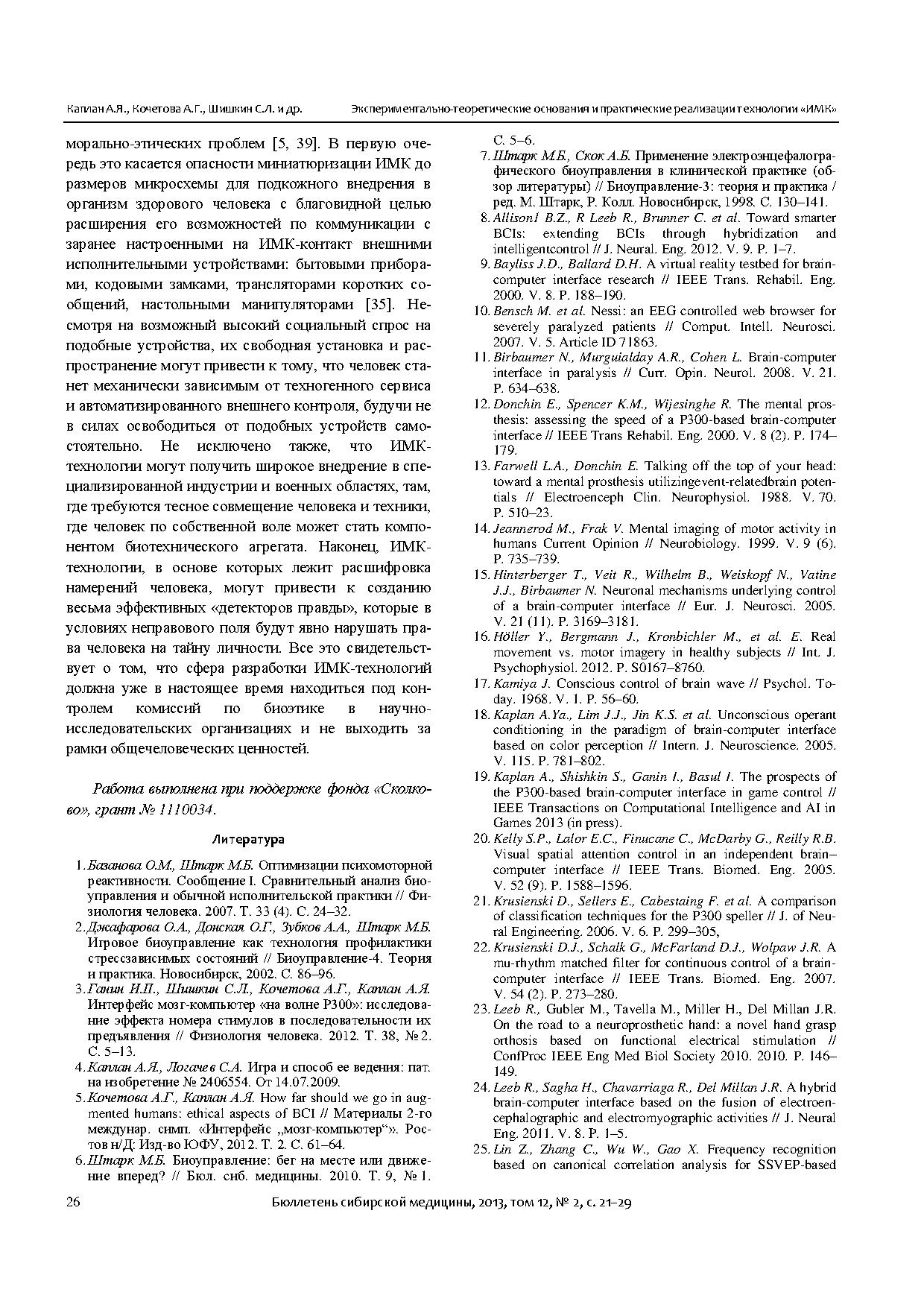 Технология интерфейсов мозг – компьютер (ИМК) позволяет человеку научиться управлять внешними исполнительными устройствами посредством произвольной модификации собственной ЭЭГ напрямую от мозга без привлечения в этот процесс нервов и мышц. В начале основной целью разработки ИМК было замещение или восстановление моторных функций человека, страдающего нейромышечными расстройствами. В настоящее время задачи разработки ИМК значительно расширились, все более захватывая различные сферы жизни здорового человека.