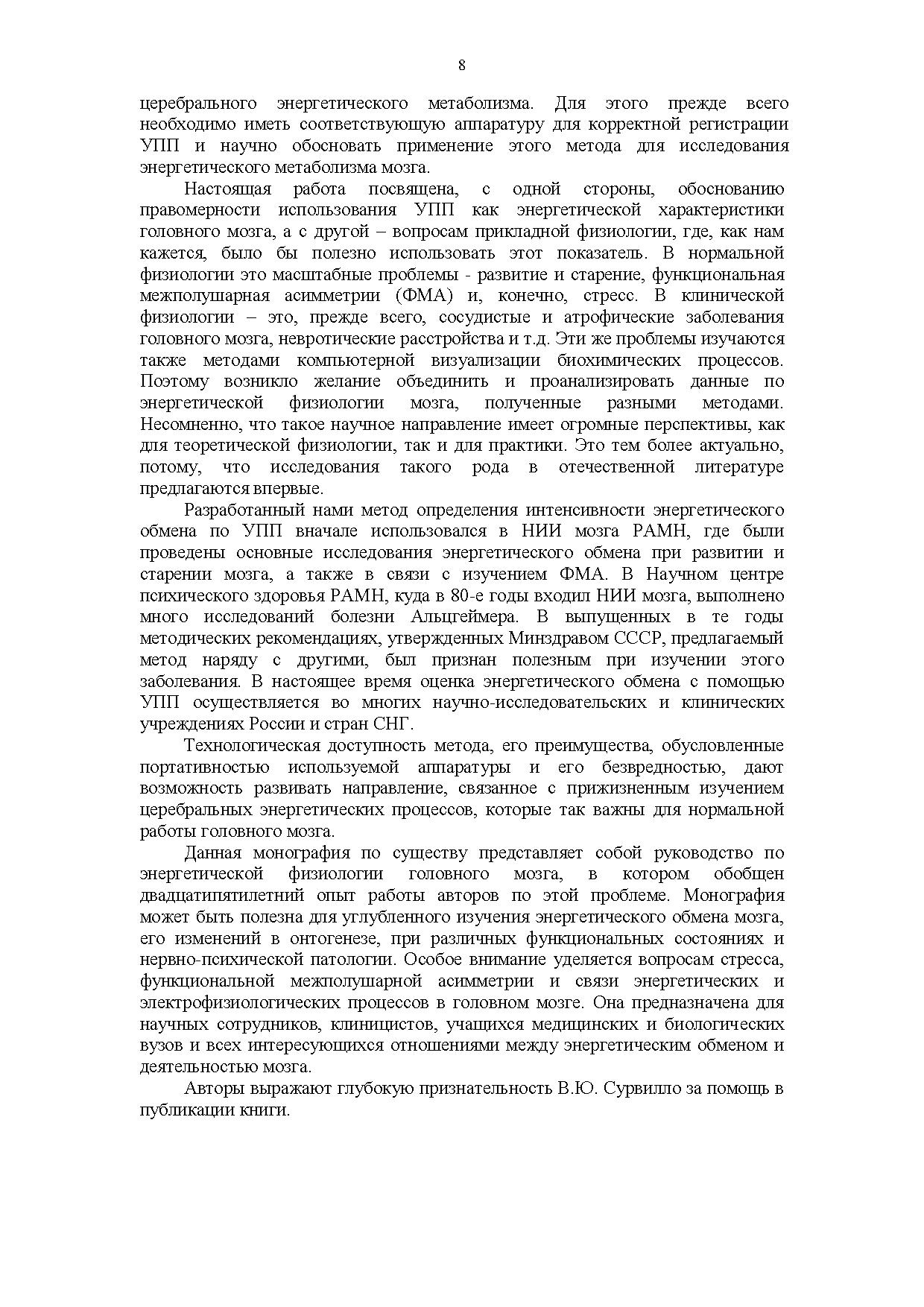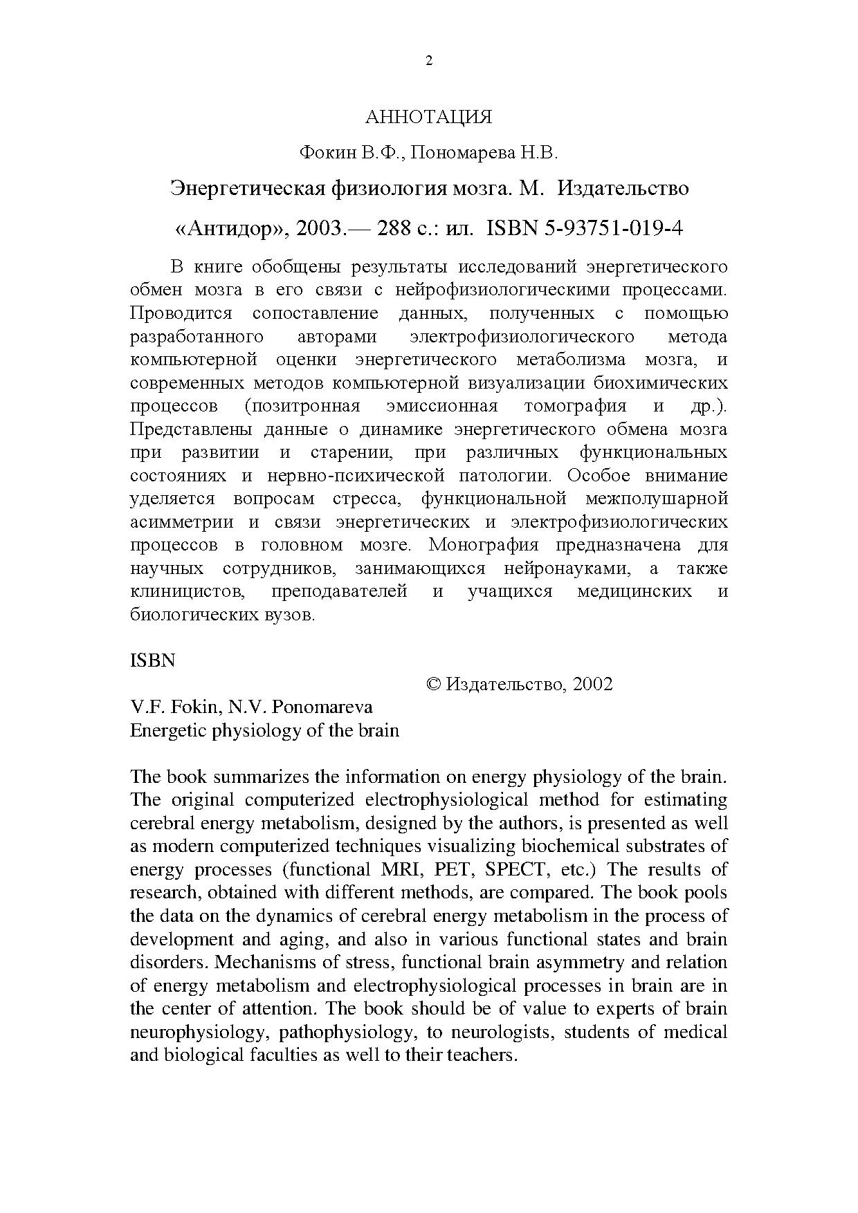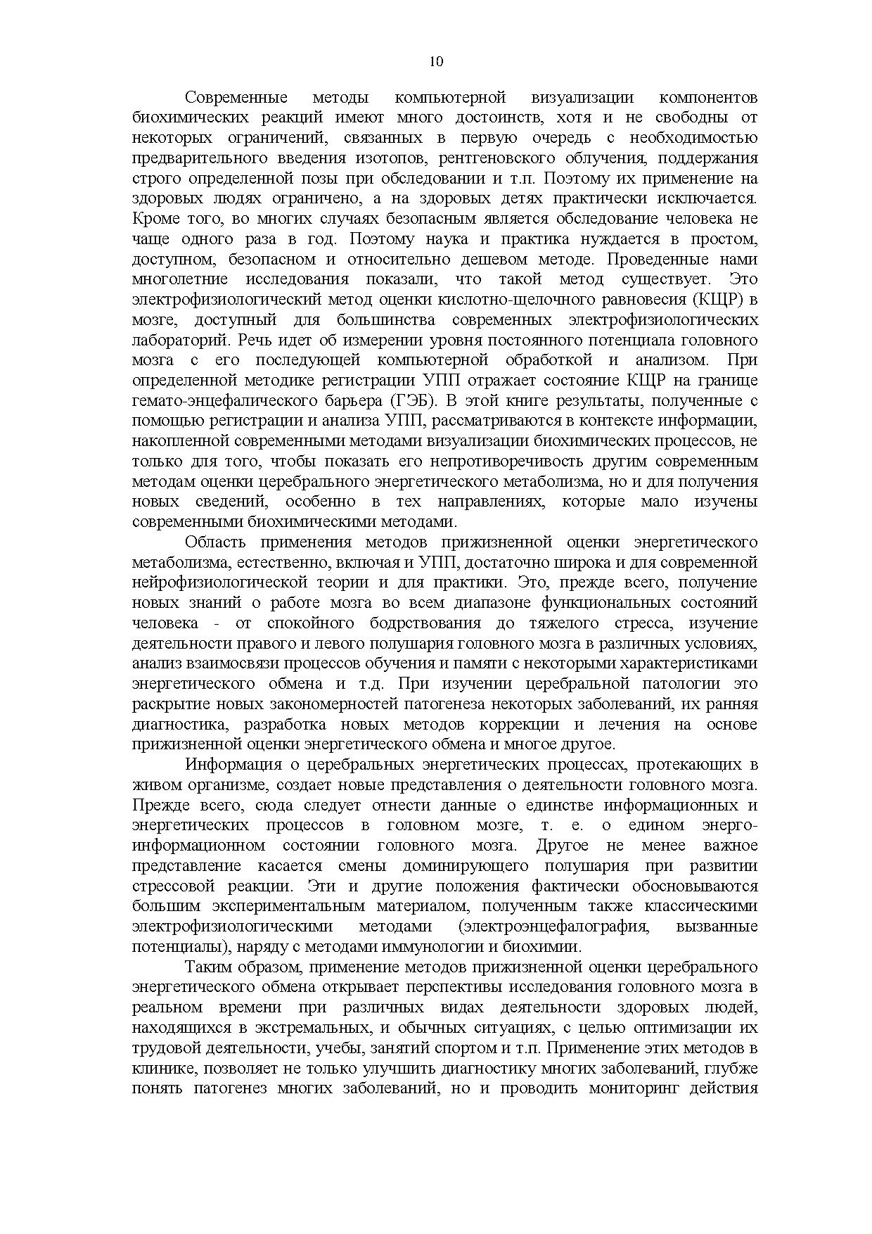 Проводится сопоставление данных, полученных с помощью разработанного авторами электрофизиологического метода компьютерной оценки энергетического метаболизма мозга, и современных методов компьютерной визуализации биохимических процессов (позитронная эмиссионная томография и др.). Представлены данные о динамике энергетического обмена мозга при развитии и старении, при различных функциональных состояниях и нервно-психической патологии. Особое внимание уделяется вопросам стресса, функциональной межполушарной асимметрии и связи энергетических и электрофизиологических процессов в головном мозге.