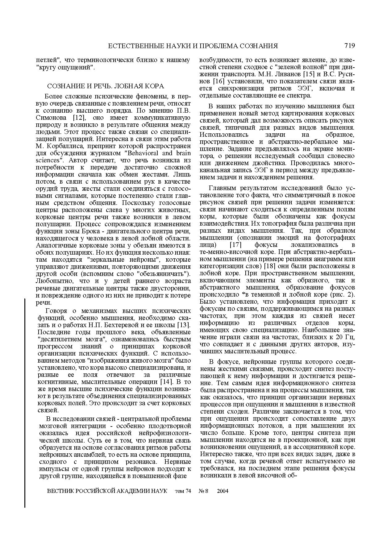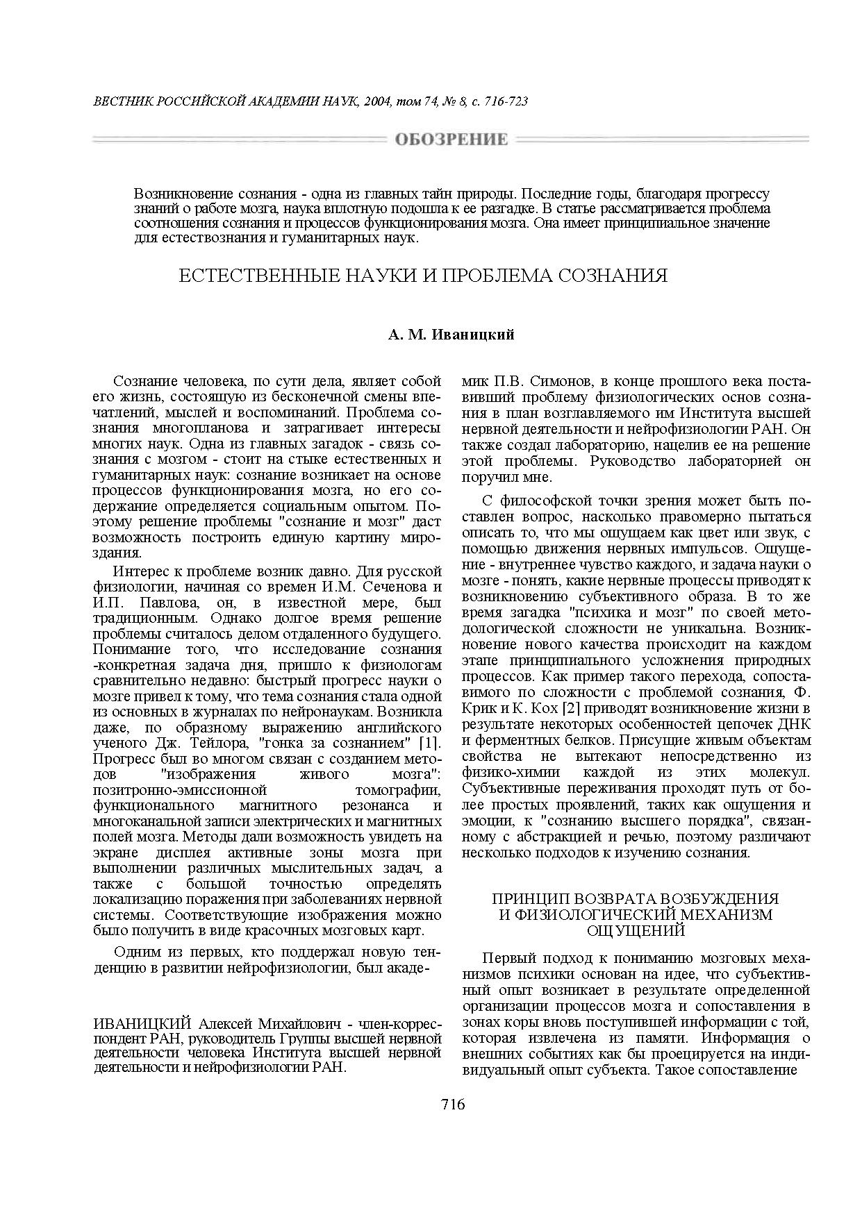 В статье рассматривается проблема соотношения сознания и процессов функционирования мозга. Она имеет принципиальное значение для естествознания и гуманитарных наук.