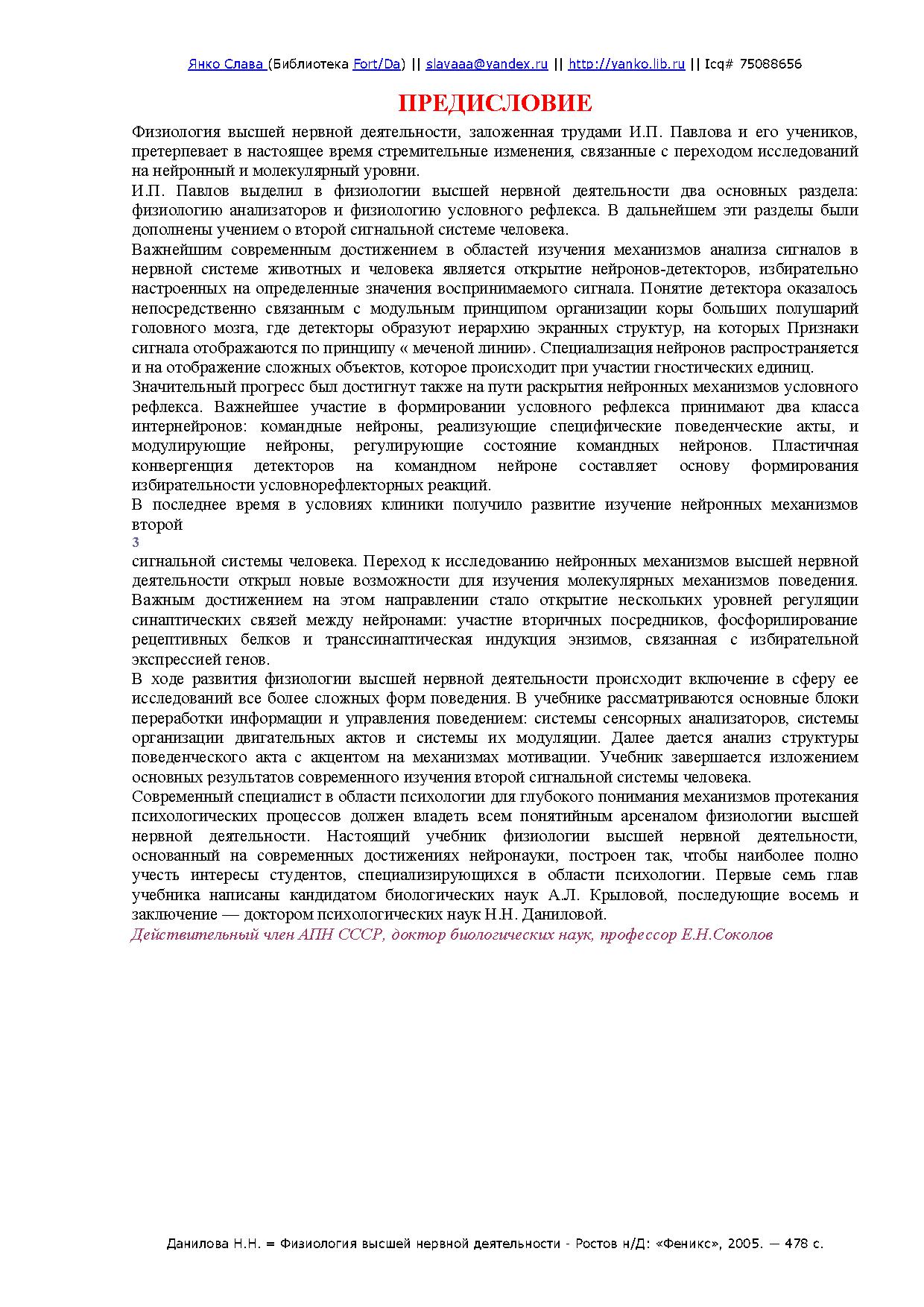 В учебнике рассматриваются основные принципы высшей нервной деятельности, физиология анализаторов, условнорефлекторная деятельность животных и человека, физиологические механизмы поведения, структура поведенческого акта. Включены разделы, посвященные нейрофизиологическим основам психических процессов человека. Большое внимание уделяется проблеме функциональных состояний, их механизмам на системном, нейронном и биохимическом уровнях. Описываются особенности высшей нервной деятельности человека, методы диагностики психологических и психофизиологических качеств.