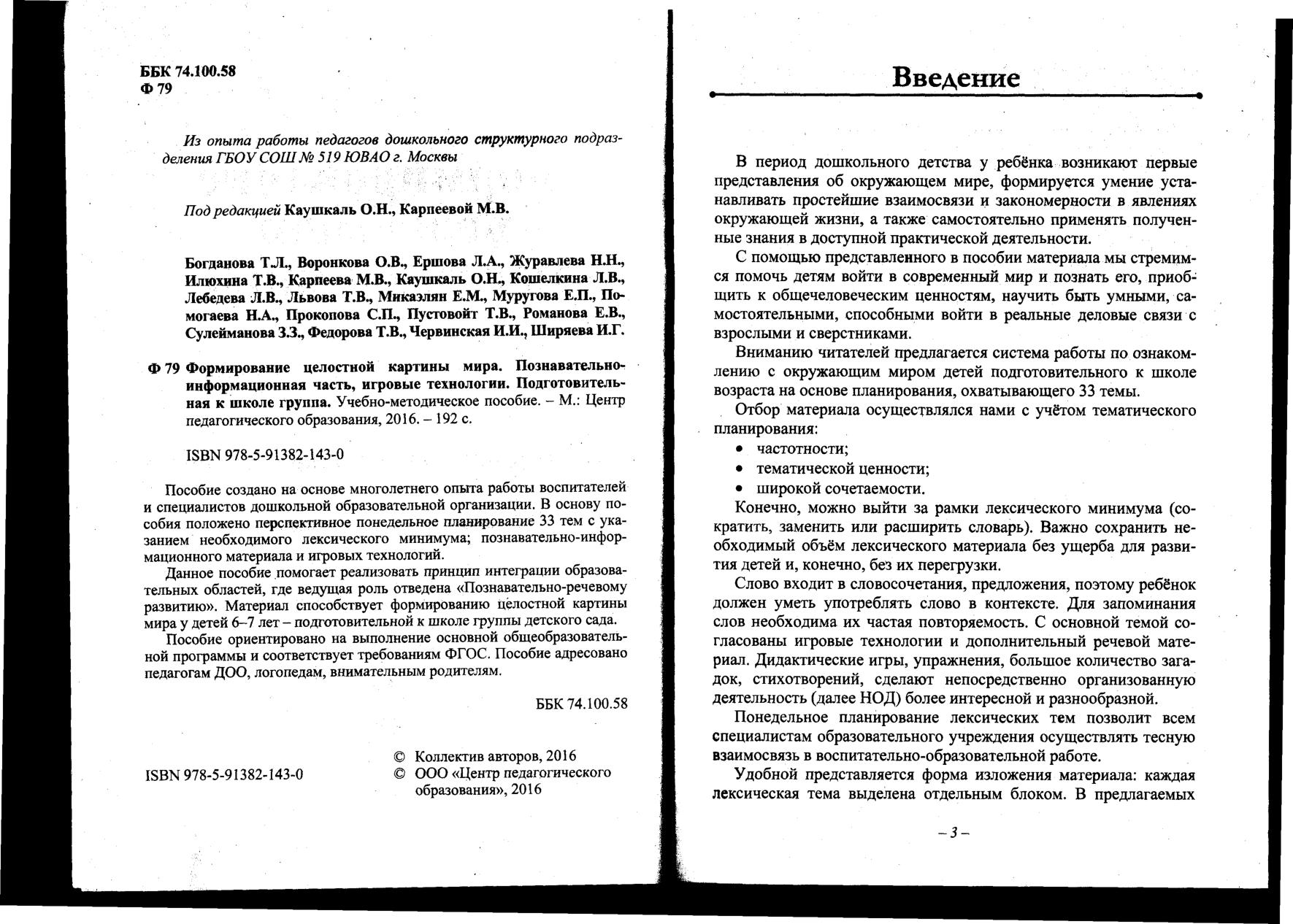 Пособие создано на основе многолетнего опыта работы воспитателей и специалистов дошкольной образовательной организации. В основу пособия положено перспективное понедельное планирование 33 тем с указанием необходимого лексического минимума; познавательно-информационного материала и игровых технологий.