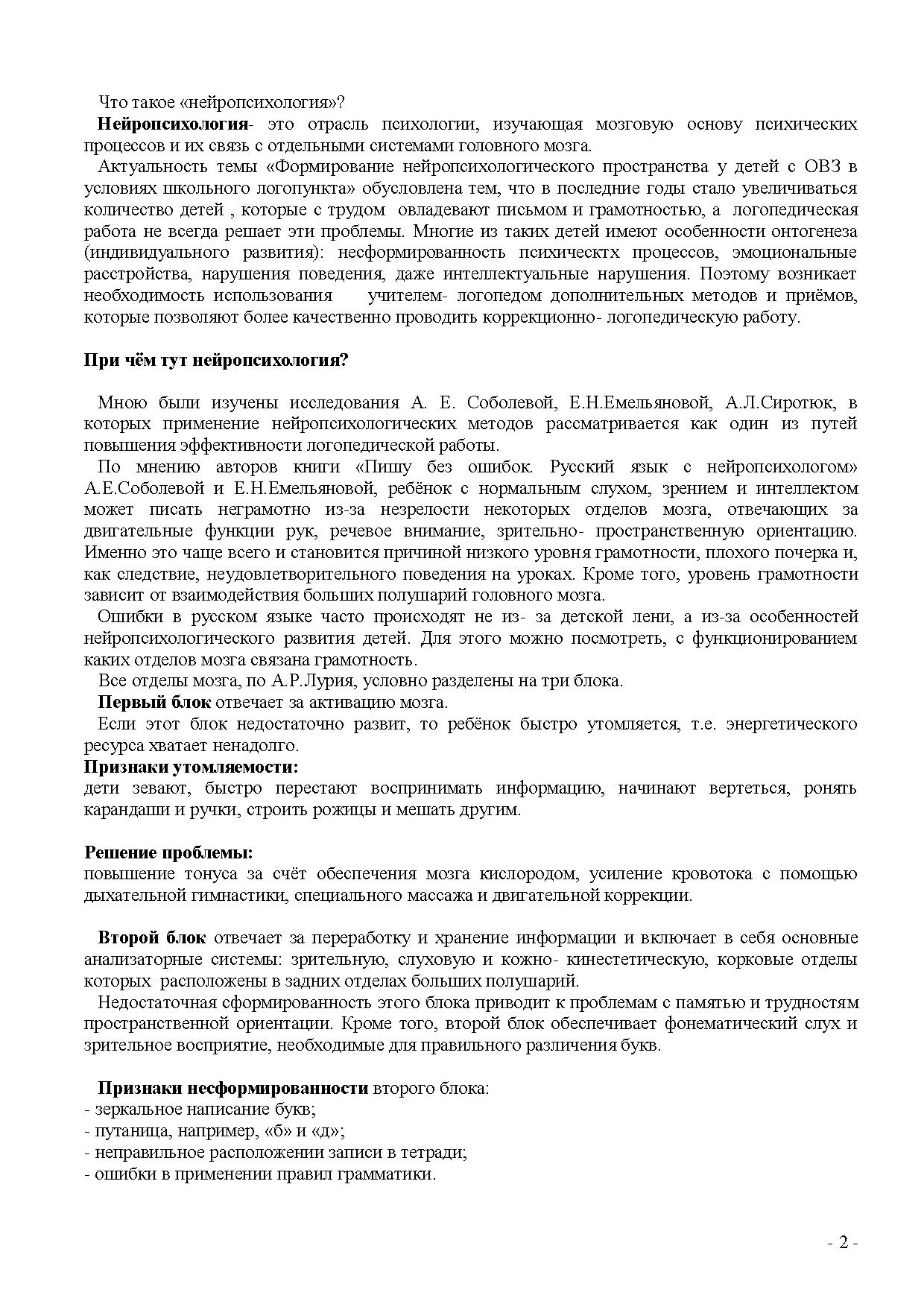 Актуальность темы «Формирование нейропсихологического пространства у детей с ОВЗ в условиях школьного логопункта» обусловлена тем, что в последние годы стало увеличиваться количество детей , которые с трудом овладевают письмом и грамотностью, а логопедическая работа не всегда решает эти проблемы. Многие из таких детей имеют особенности онтогенеза (индивидуального развития): несформированность психическтх процессов, эмоциональные расстройства, нарушения поведения, даже интеллектуальные нарушения. Поэтому возникает необходимость использования учителем- логопедом дополнительных методов и приёмов, которые позволяют более качественно проводить коррекционно- логопедическую работу.