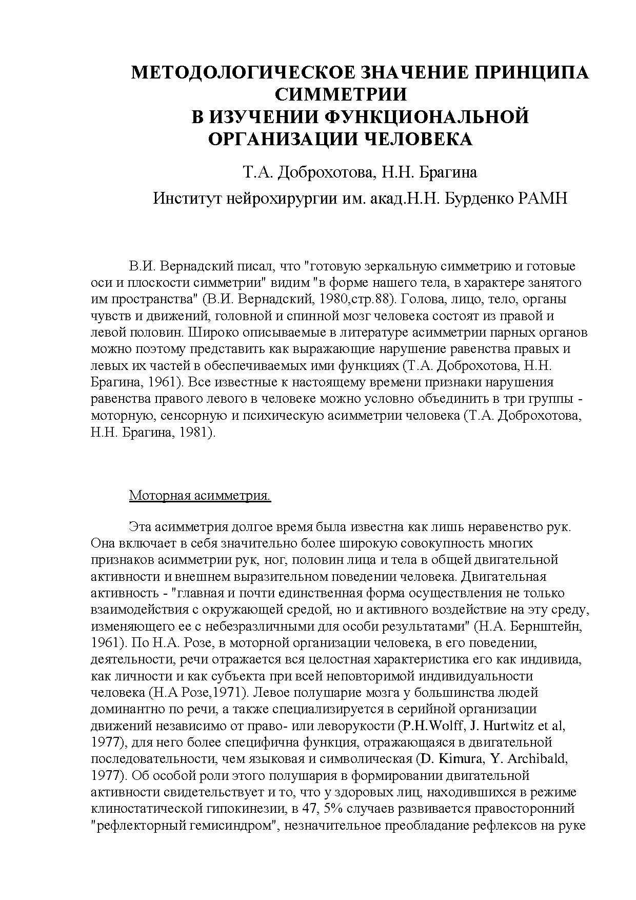 В самом деле, при очень скромных морфологических различиях между правым и левым полушарием имеет место значительная разница в функциях. Впервые четко эта проблема проявилась из клинических наблюдений Брока и Вернике, показавших связь небольшого участка лобной и височной коры левого полушария с речевыми функциями, и отсутствие такой связи с симметричными областями правого полушария. Однако в то время большинство ученых рассматривало это явление скорее как некоторый морфо-функциональный казус присущий только человеку, чем общебиологическую закономерность.