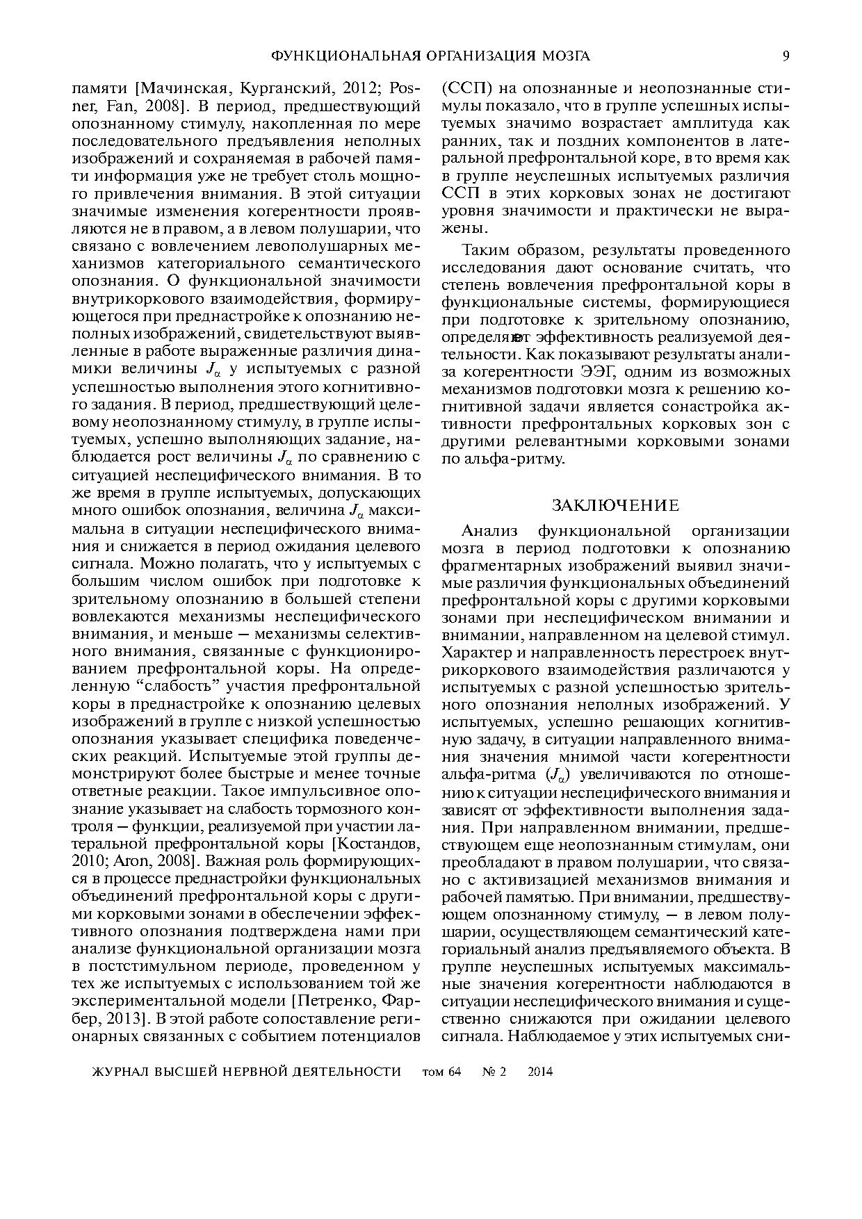 Полученные данные свидетельствуют о том, что сонастройка электрической активности корковых зон по альфаритму является одним из механизмов их функционального объединения в период подготовки к опознанию неполных изображений.