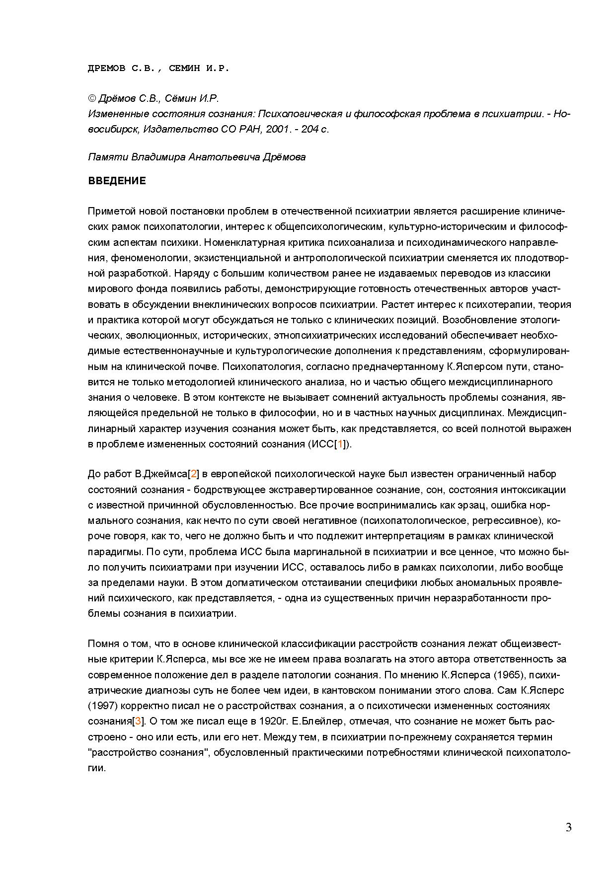 Проблема изменений сознания исследуется в контексте экзистенциально-антропологической психиатрии. Постановка проблемы в данном аспекте соотносится с гуманитарной традицией изучения сознания в философии, гуманистической психологии и культурной антропологии.
