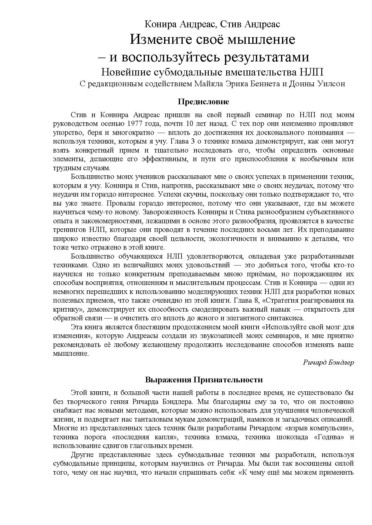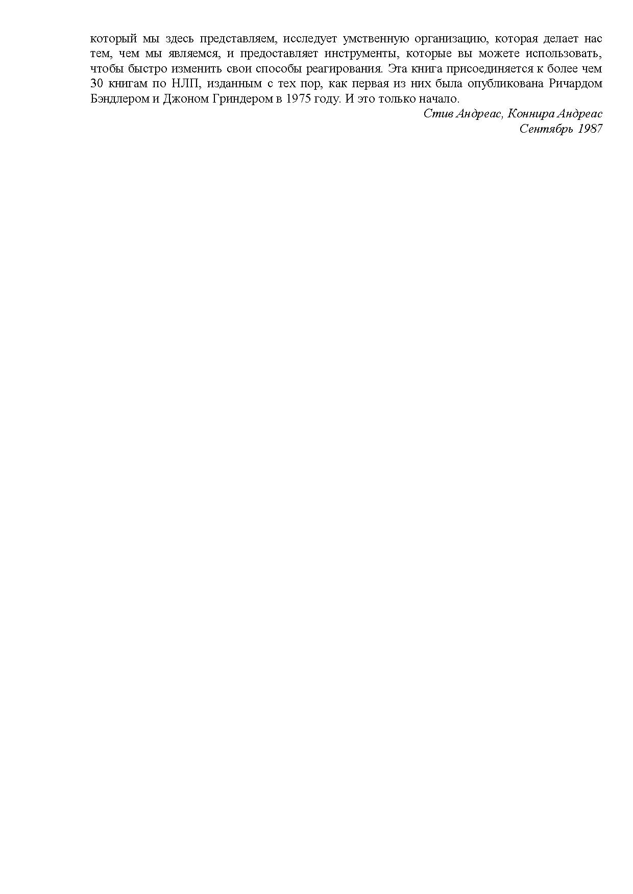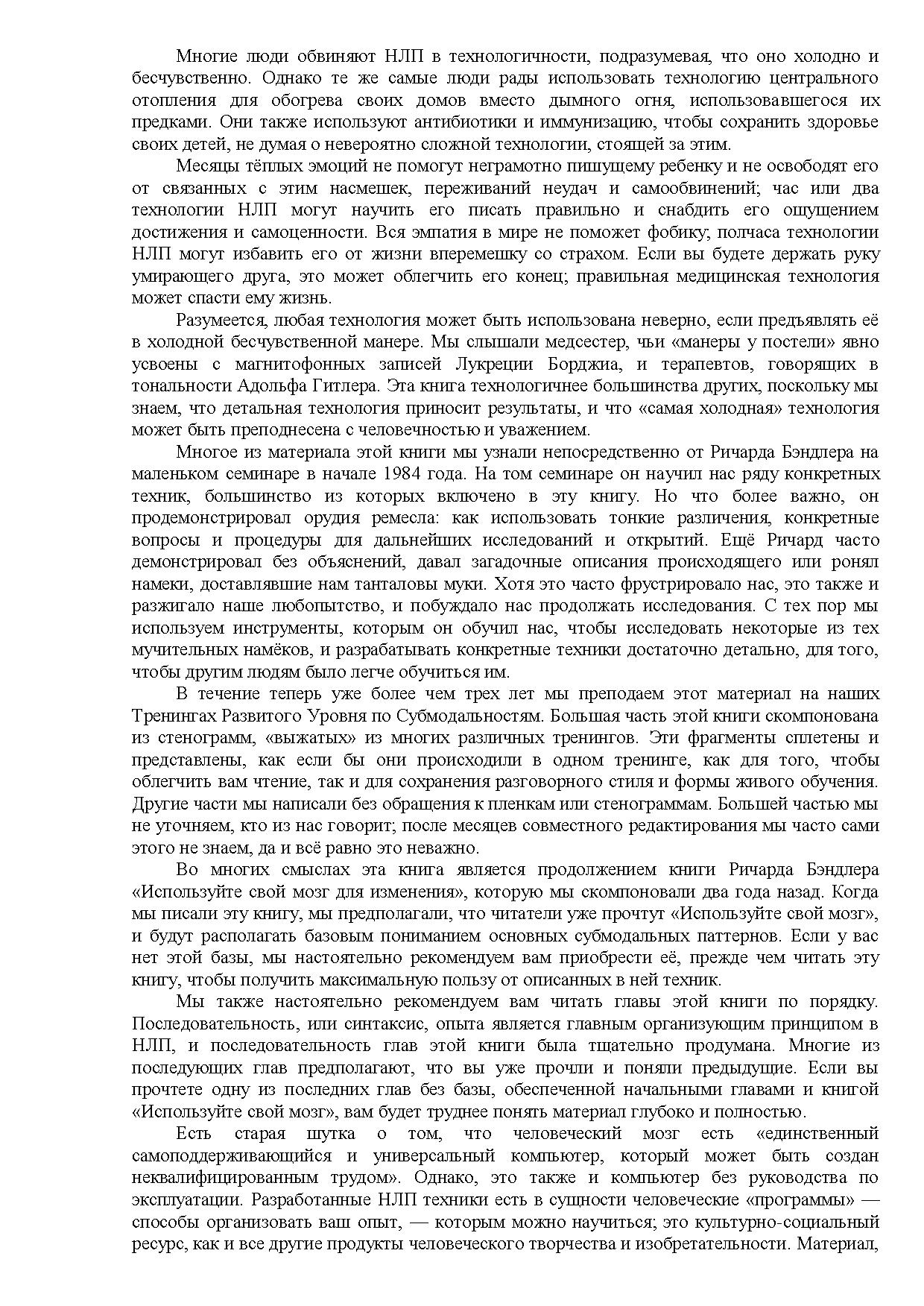 Перед вами обработанные, творчески осмысленные и дополненные записи живых семинаров Мастеров НЛП, которые можно рекомендовать любому специалисту, желающему продолжить свой профессиональный и личностный рост, или начинающему исследователю-практику в области человеческих отношений и коммуникаций.