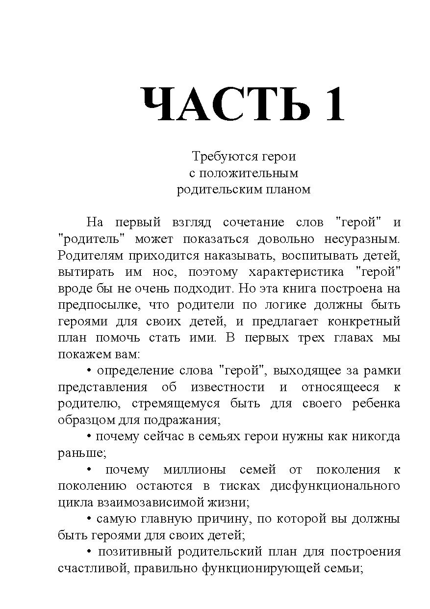 Нужны лишь любовь, целенаправленность и реальный план. Из этой книги вы узнаете, как можно проявлять сочувствие, характер и последовательность, чтобы стать положительным примером для подражания. Вы найдете множество практических советов и в то же время увидите, что роль героя подразумевает и немало забавных черт. Но, самое главное, вы научитесь поддерживать со своими детьми такие отношения, которые помогут им вести наполненную жизнь с избытком даже в нашем опасном и враждебном мире. Что еще надо родителям?