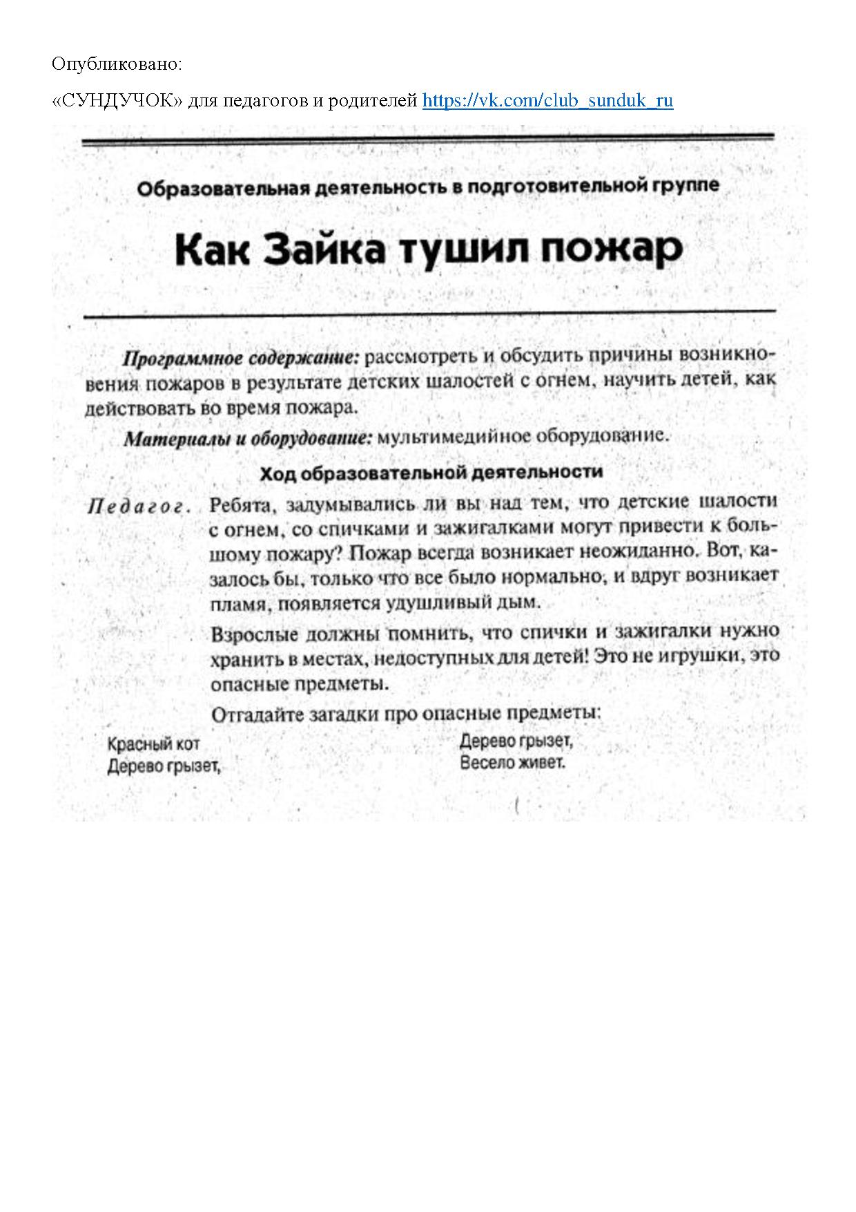Цель: Рассмотреть и обсудить причины возникновения пожаров в результате детских шалостей с огнем, научить детей, как действовать во время пожара.