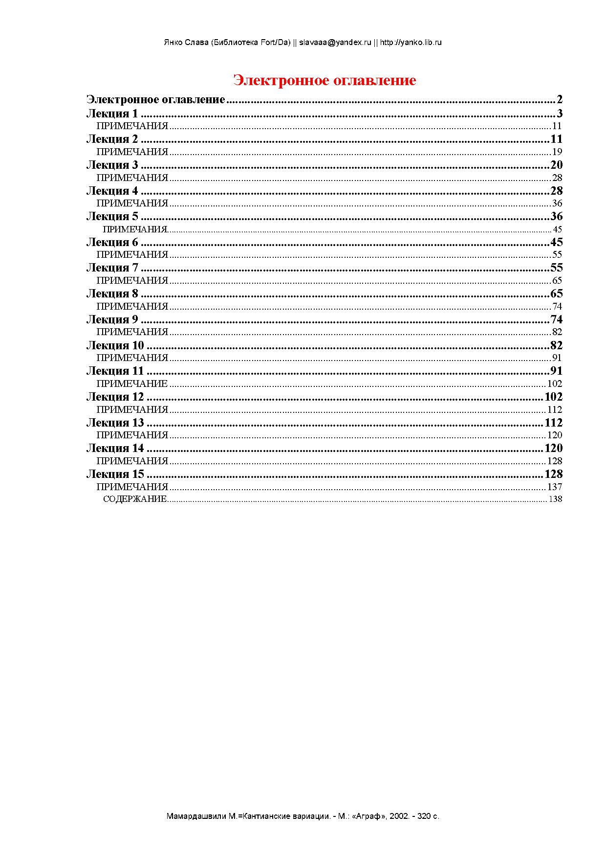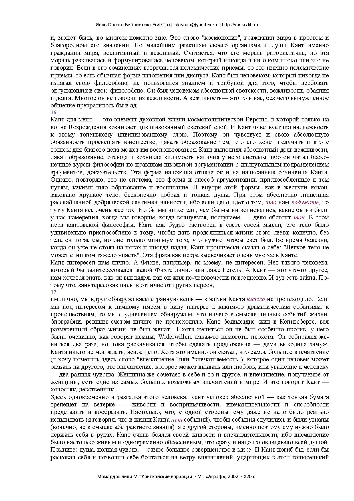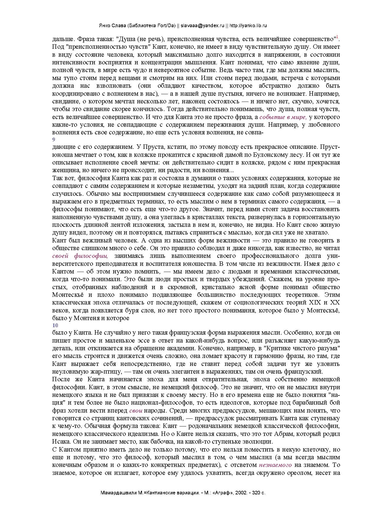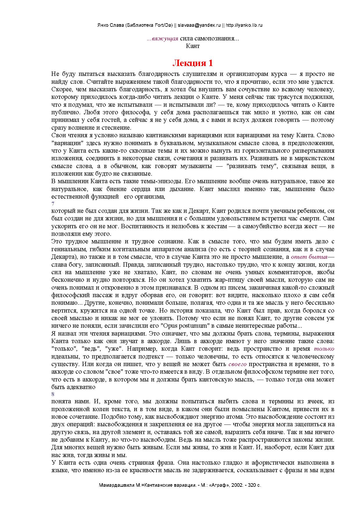 Читая лекции о своих любимых философах, Мераб Константинович никогда не предпринимал специальных усилий для их публикации. Единственное исключение - "Кантианские вариации".