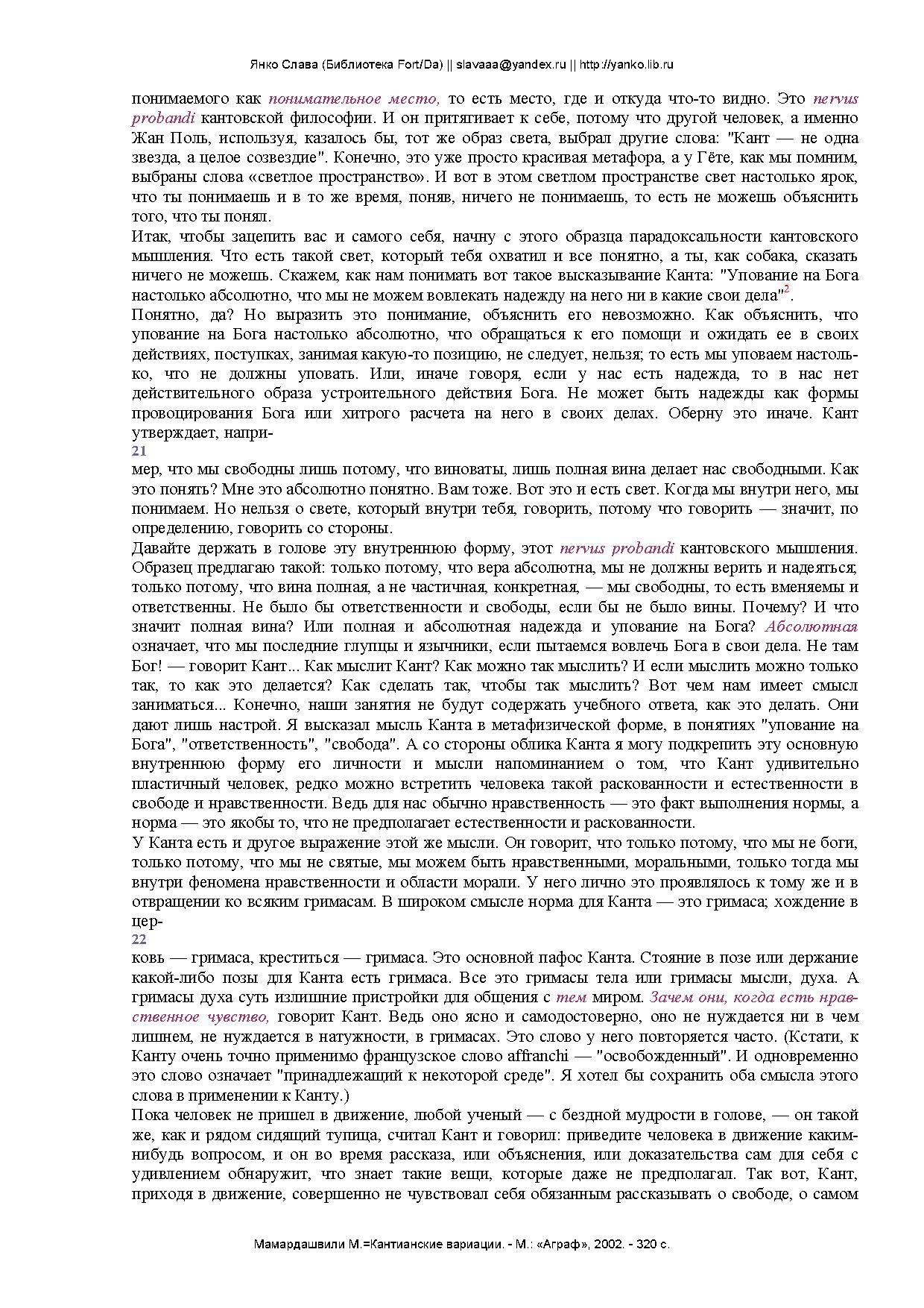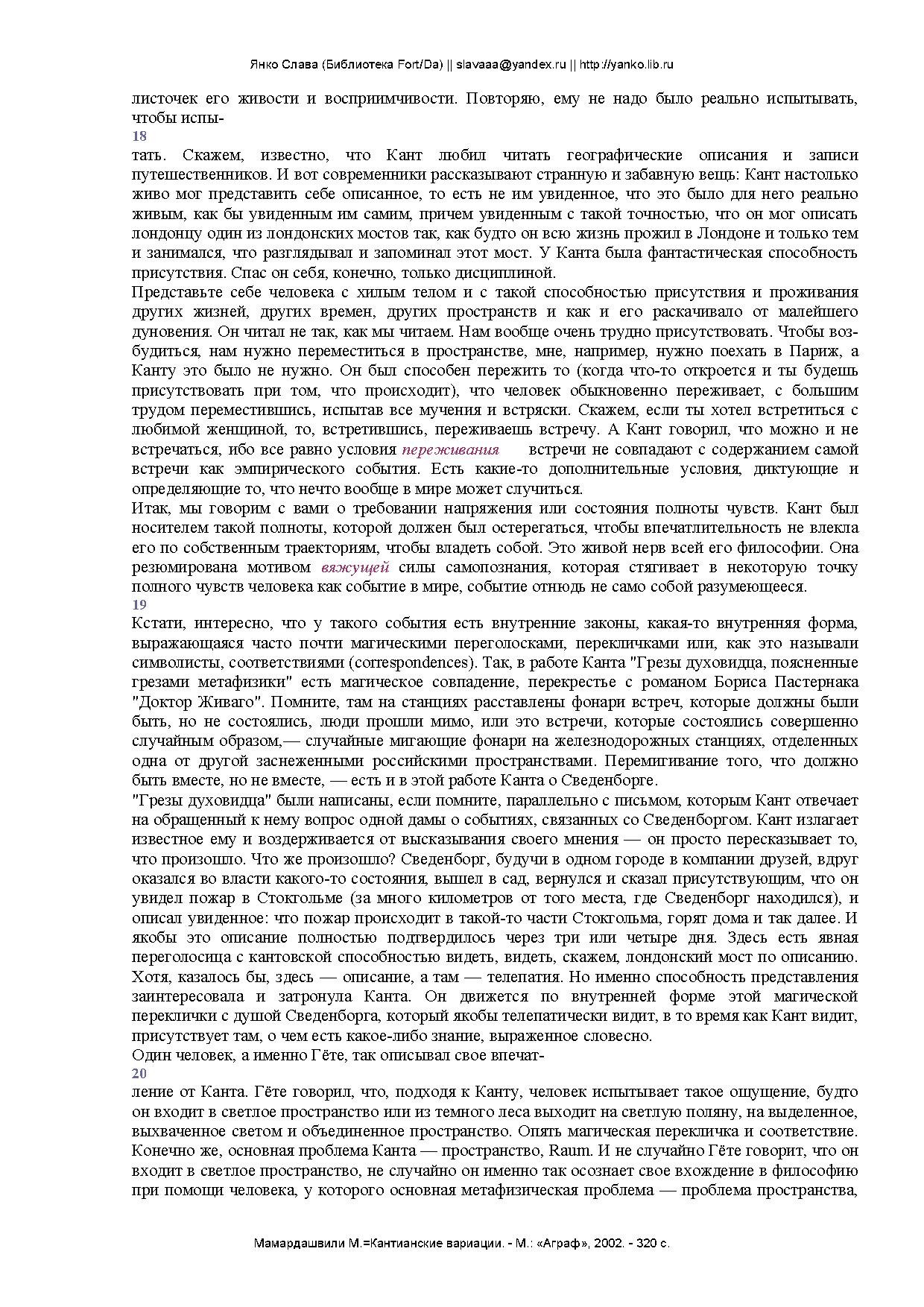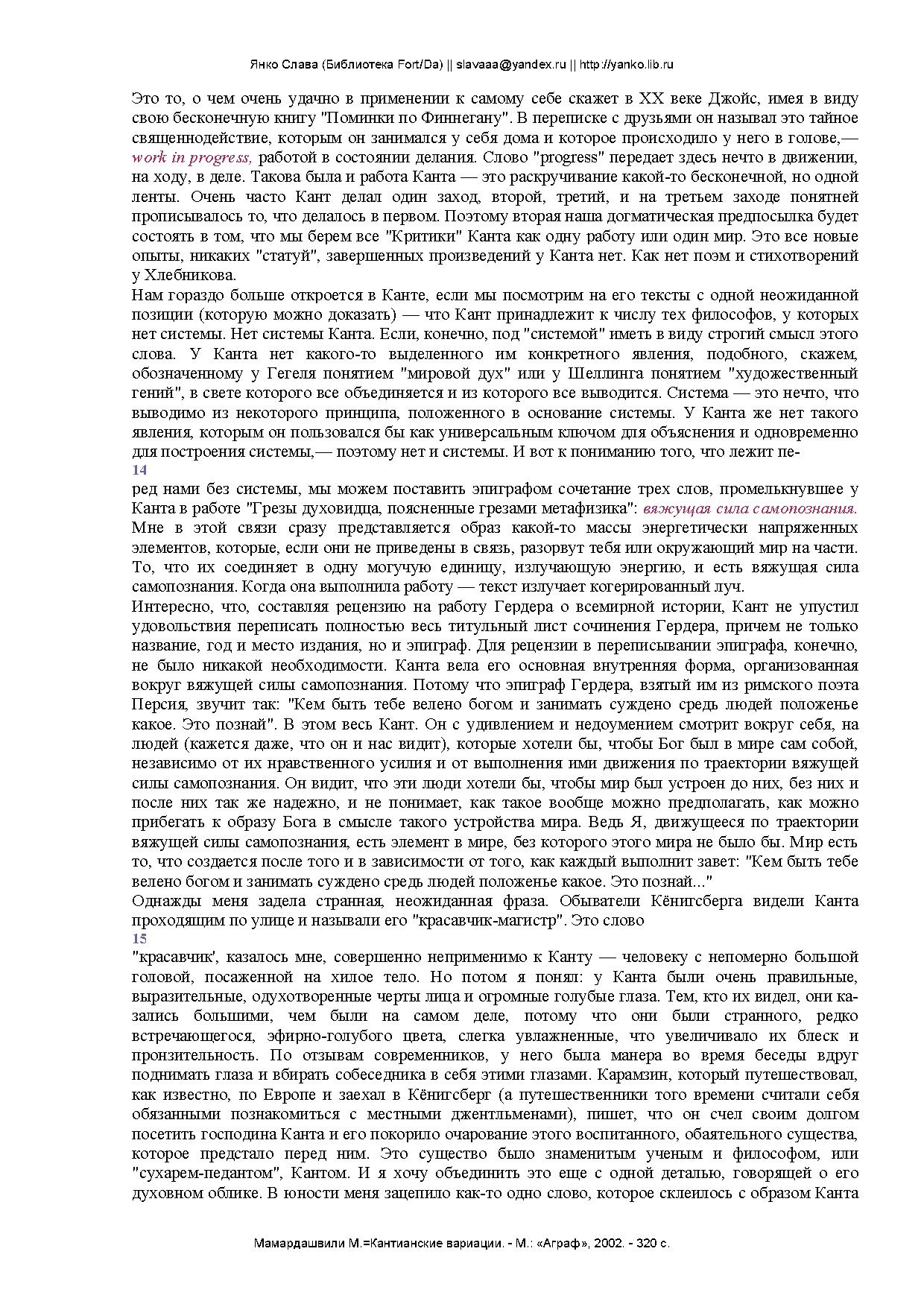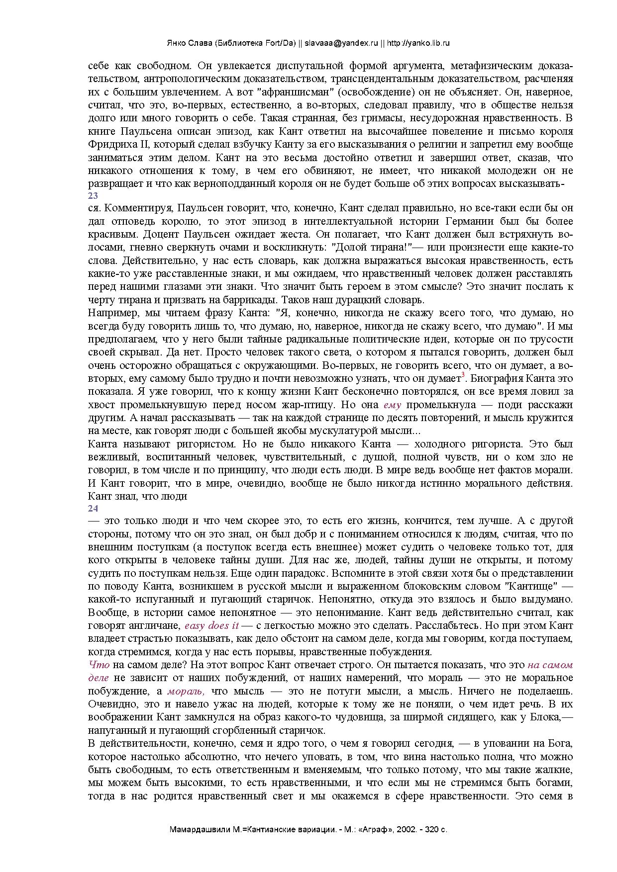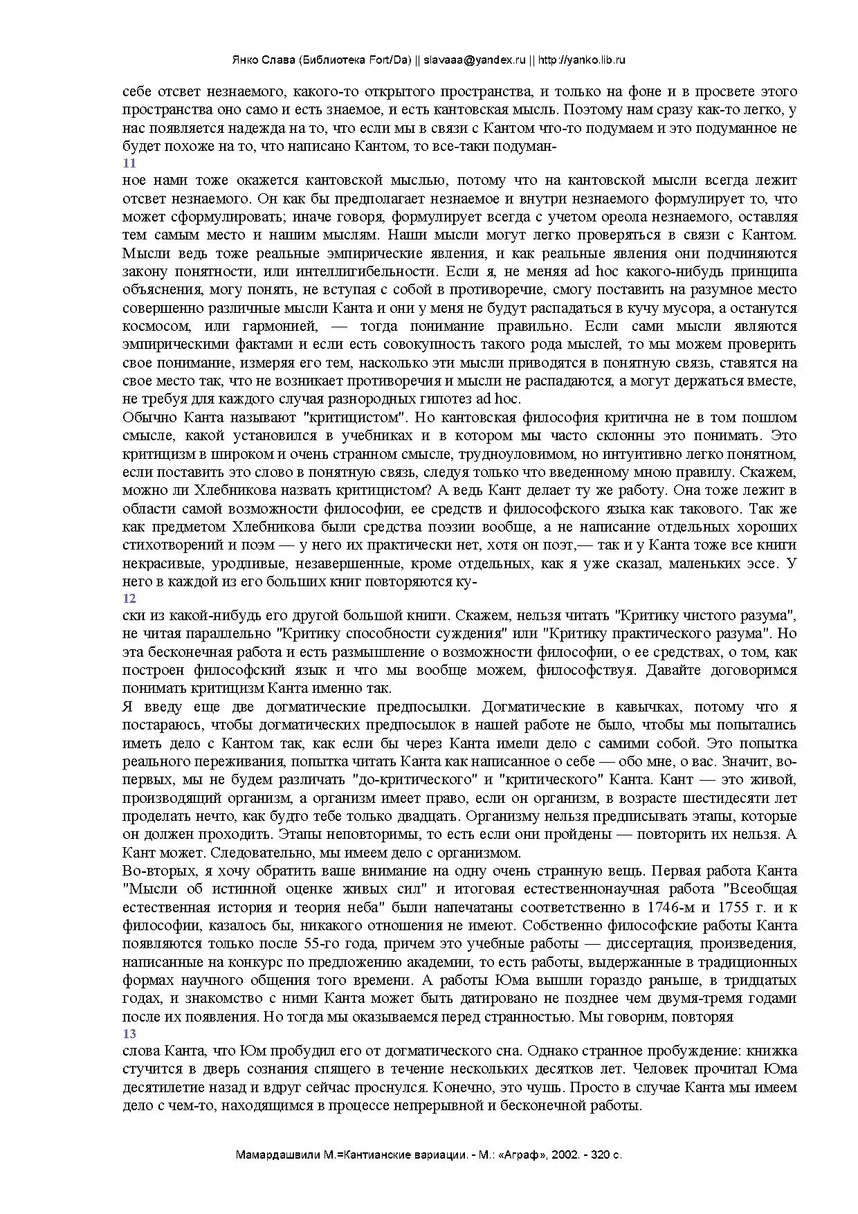 Читая лекции о своих любимых философах, Мераб Константинович никогда не предпринимал специальных усилий для их публикации. Единственное исключение - "Кантианские вариации".