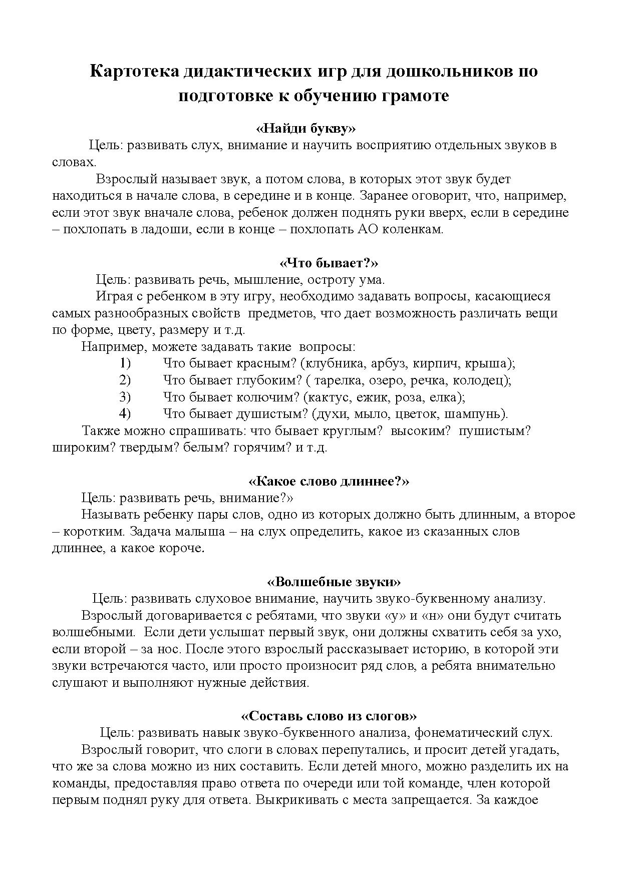 Картотека дидактических игр для дошкольников по подготовке к обучению грамоте
