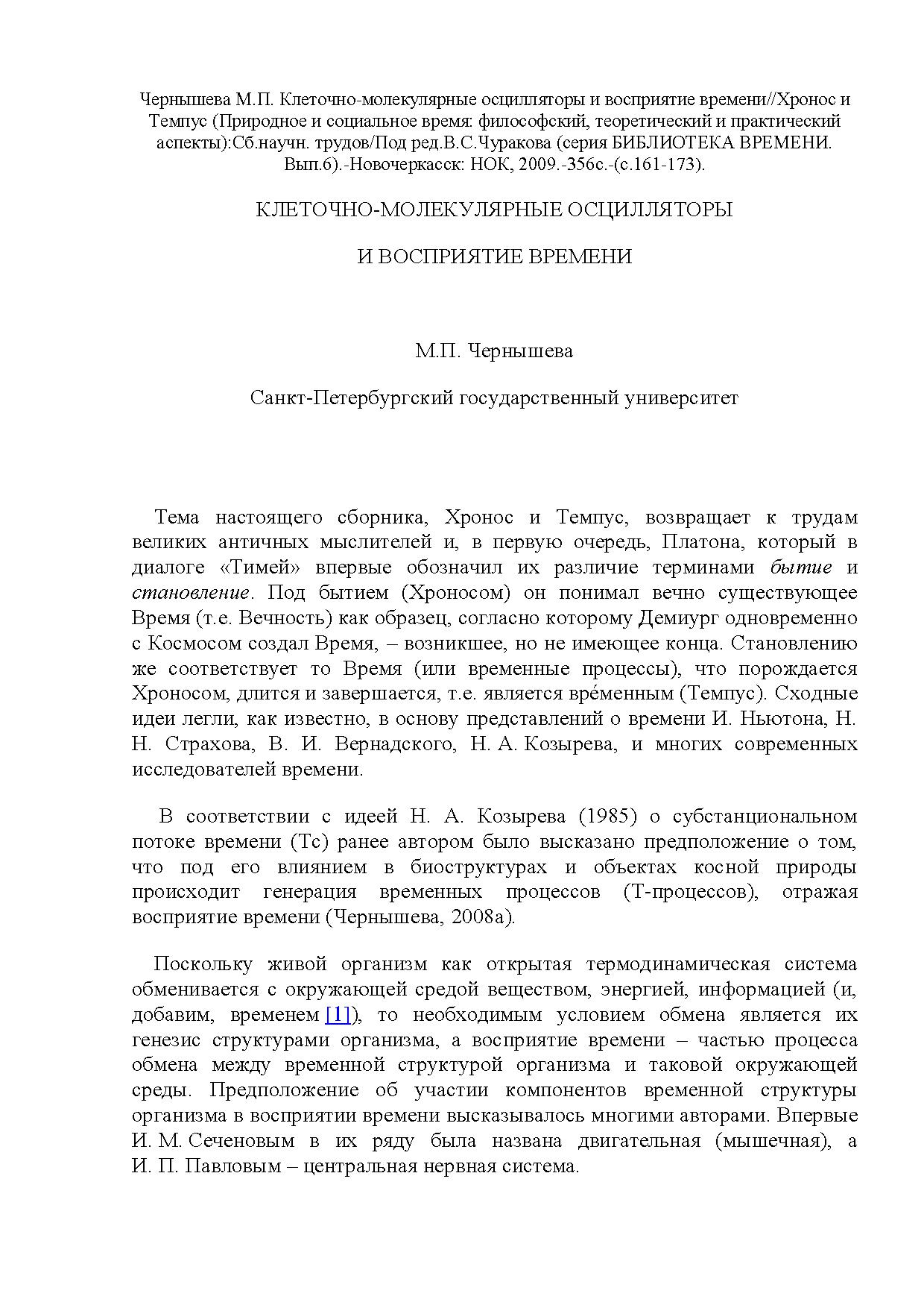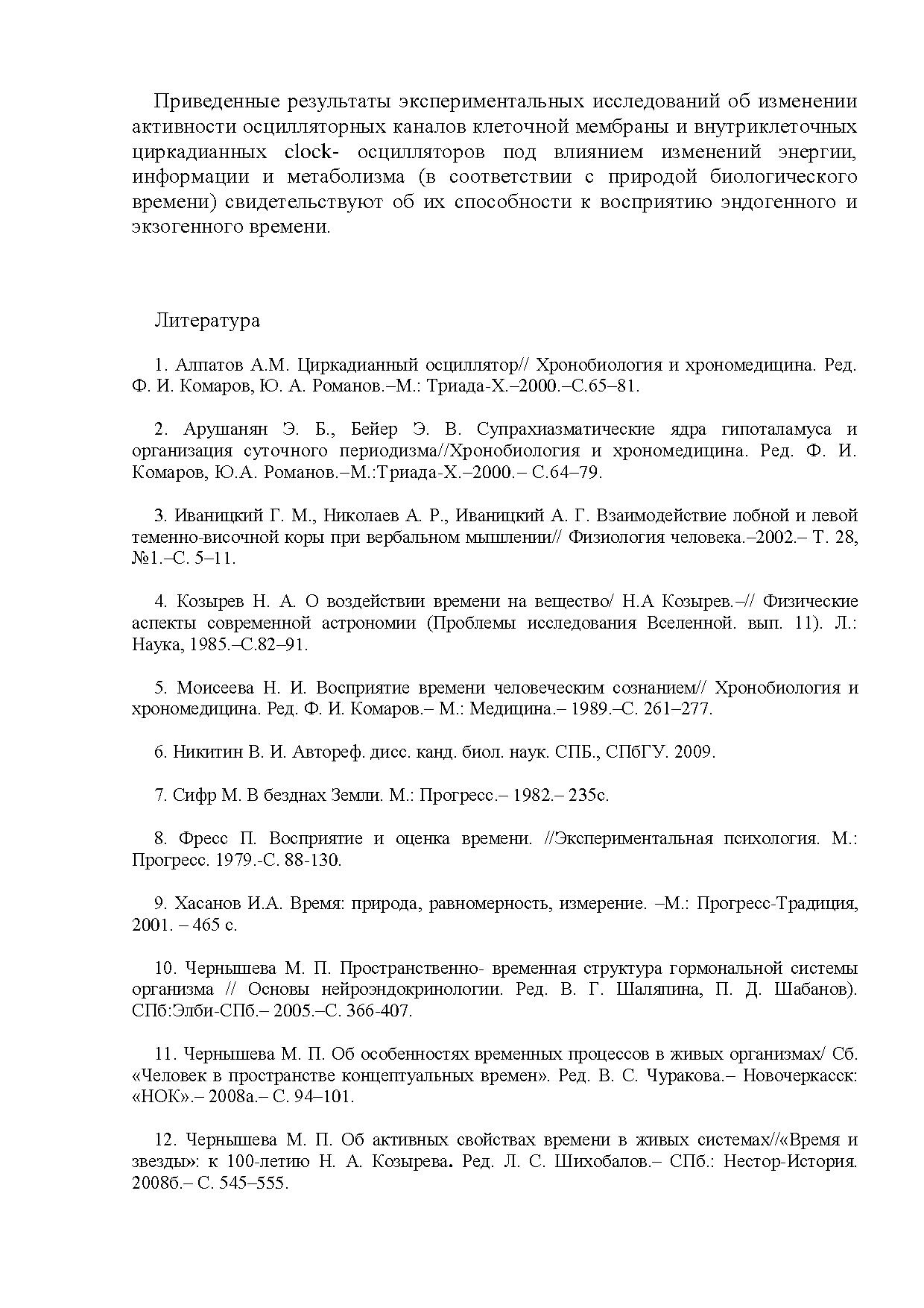 Поскольку живой организм как открытая термодинамическая система обменивается с окружающей средой веществом, энергией, информацией (и, добавим, временем), то необходимым условием обмена является их генезис структурами организма, а восприятие времени – частью процесса обмена между временной структурой организма и таковой окружающей среды.