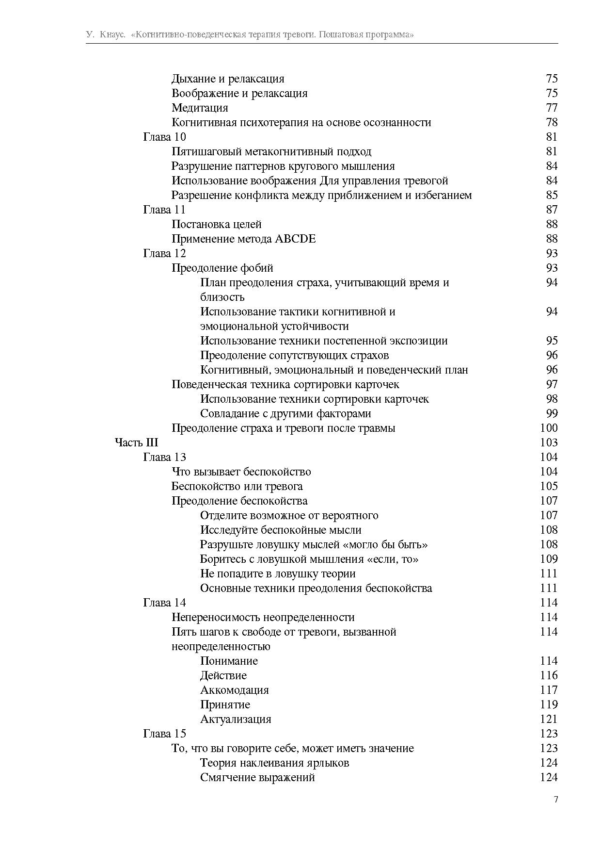 Психолог Уильям Кнаус научит вас распознавать триггеры беспокойства и поможет развить навыки предотвращения негативных мыслей.В основе предлагаемой автором программы – два мощных и доказавших свою эффективность подхода к лечению тревоги: рационально-эмоционально-поведенческая терапия (РЭПТ) и когнитивно-поведенческая терапия (КПТ). Описанные техники «отшлифованы» автором за сорок пять лет клинической практики и адаптированы для саморегуляции эмоционального состояния и самопомощи.