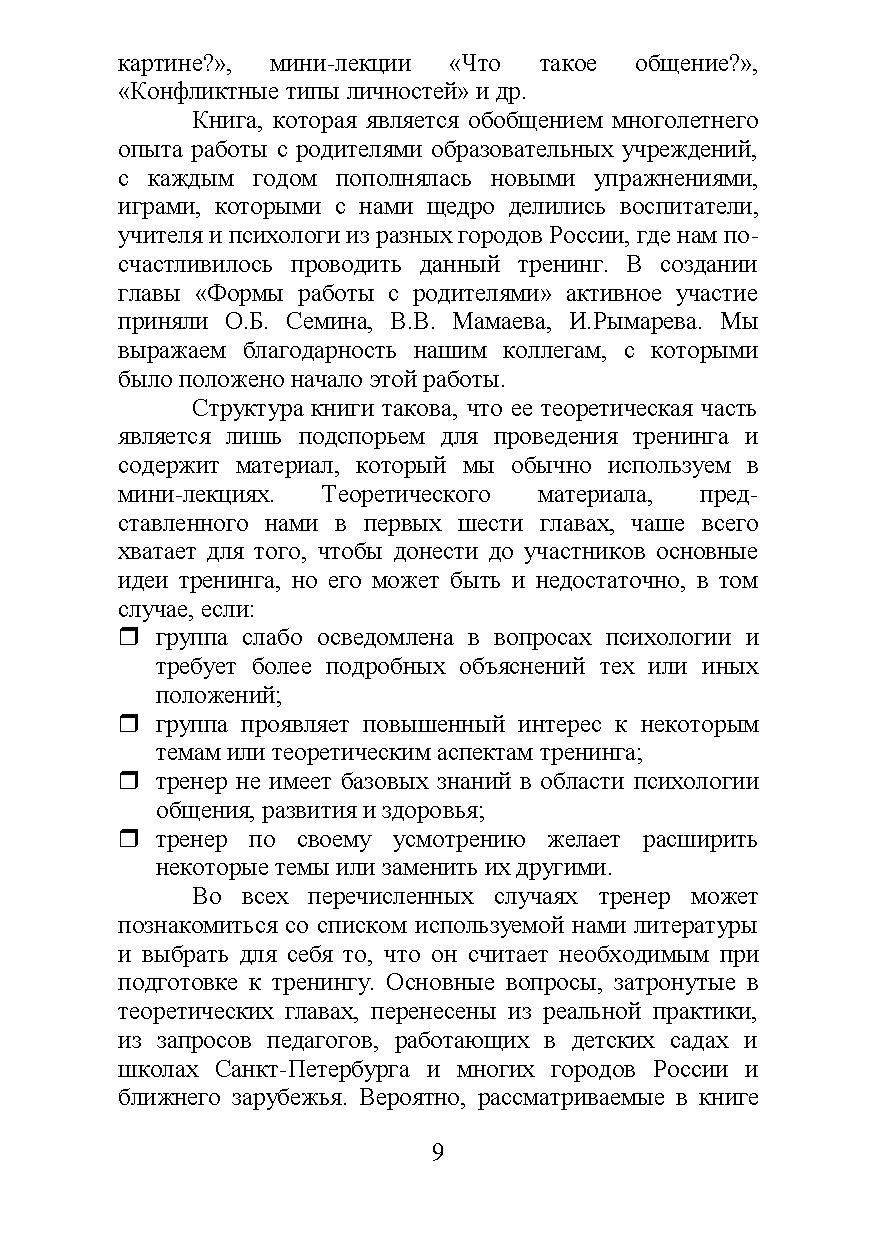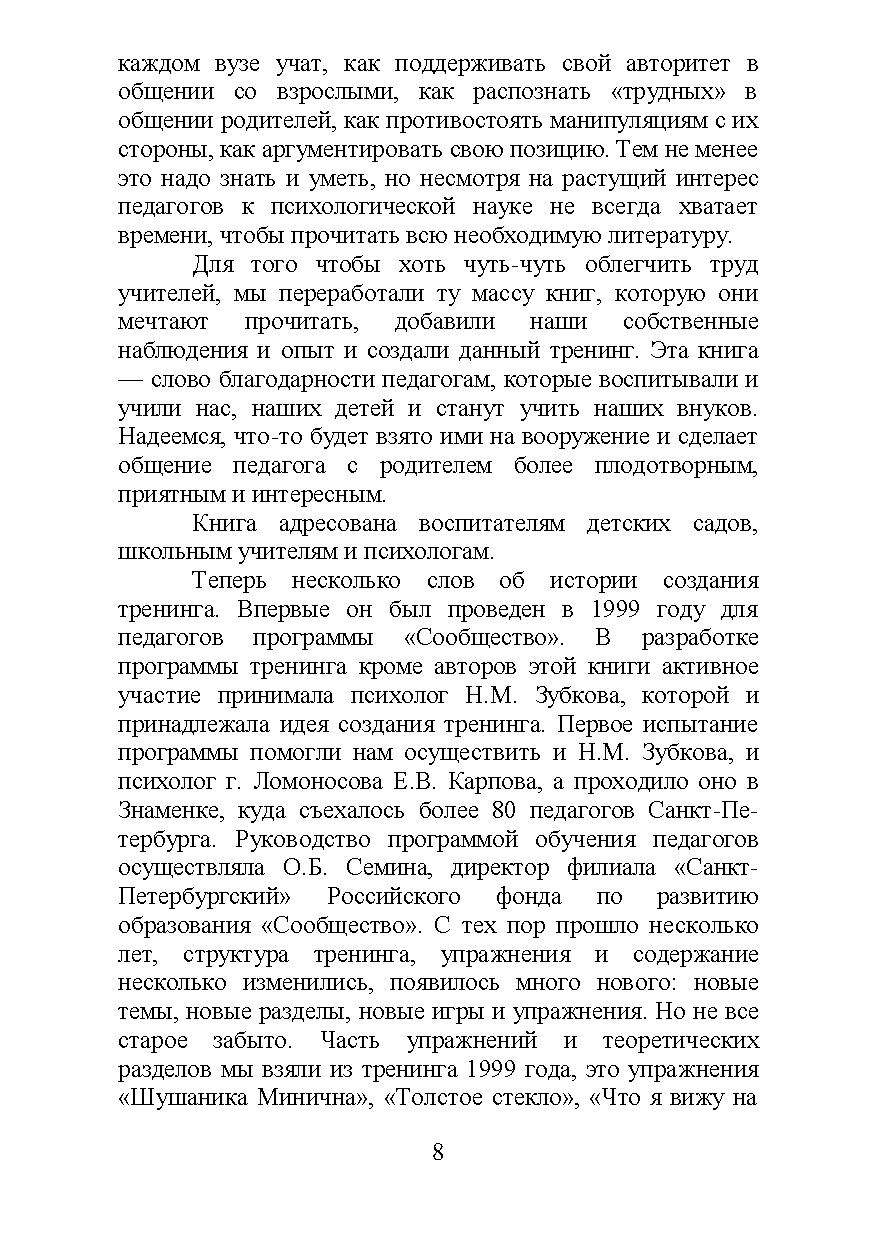 Эта книга адресована всем, кто работает с родителями детей и подростков: практическим психологам, учителям, работникам детских дошкольных учреждений, руководителям кружков и т.д., а также преподавателям психологии, которые смогут взять отдельные упражнения для своих тренингов и практических занятий.