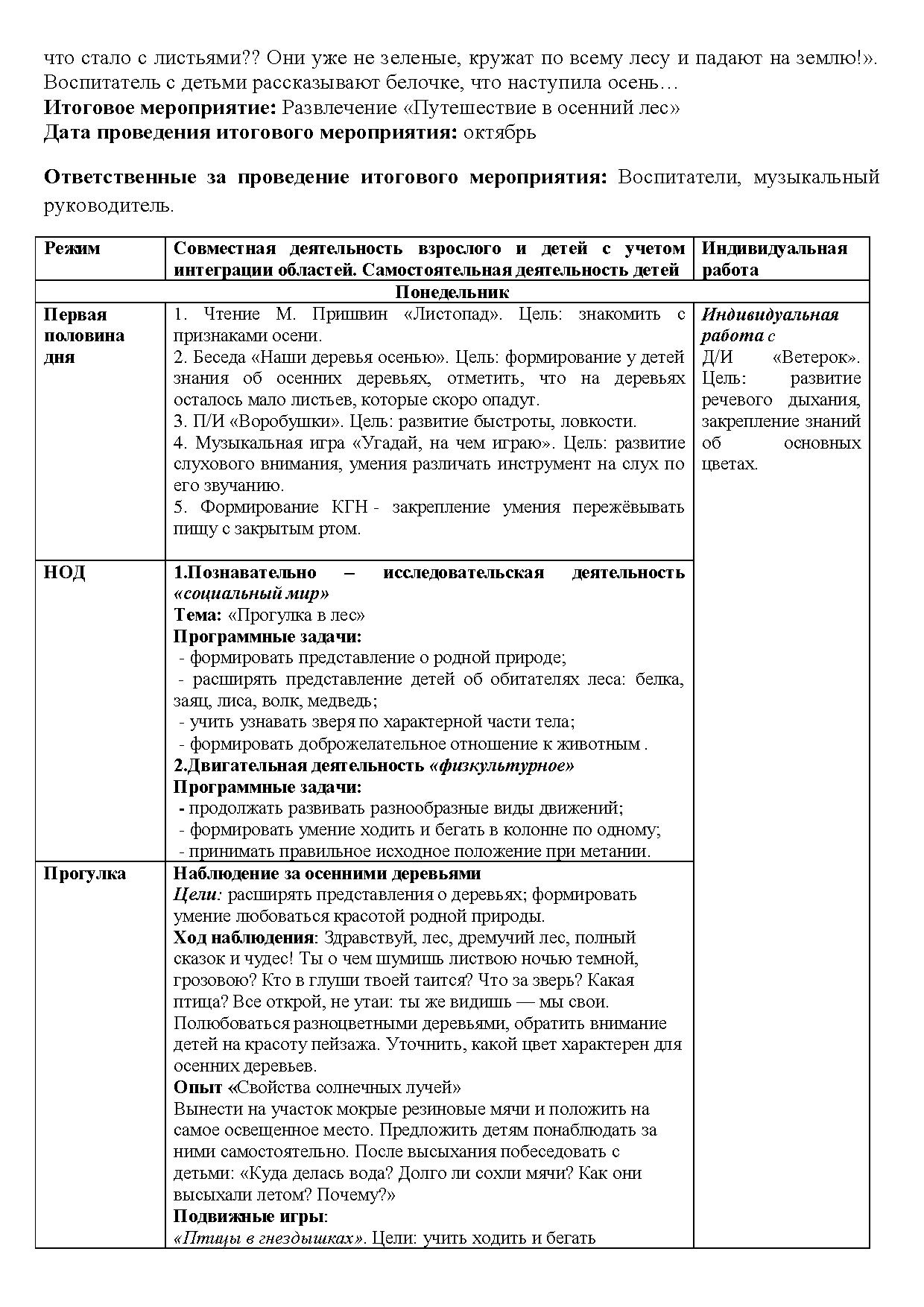 · знакомить с растениями, а так же с некоторыми особенностями поведения лесных зверей и птиц осенью;