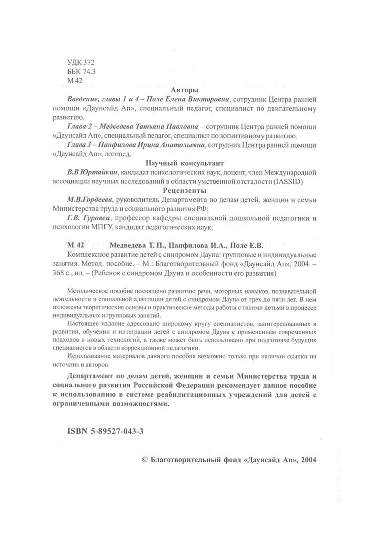 Методическое пособие посвящено развитию речи, моторных навыков, познавательной деятельности и социальной адаптации детей с синдромом Дауна от трех до пяти лет. В нем изложены теоретические основы и практические методы работы такими детьми в процессе индивидуальных и групповых занятий.