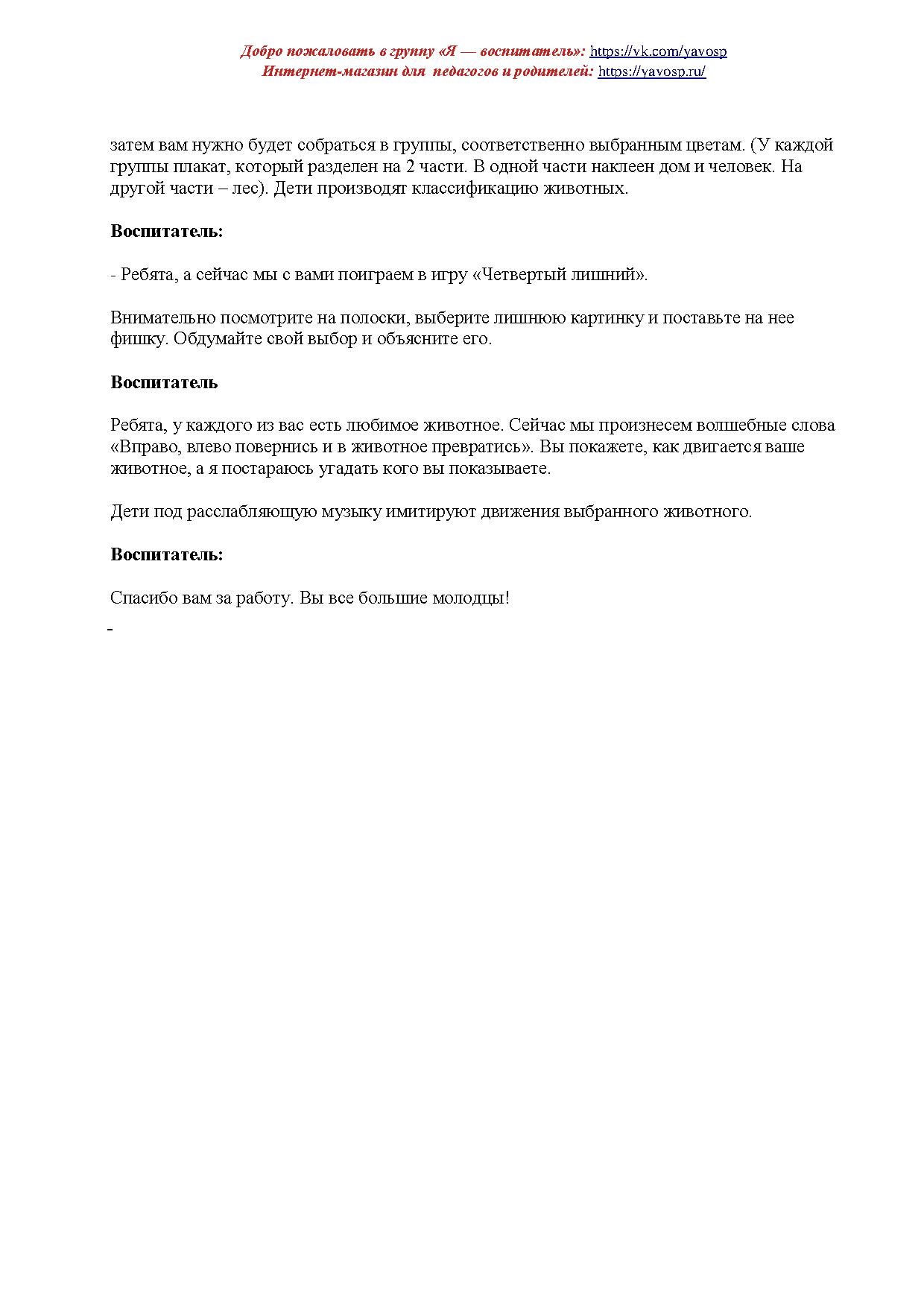 Воспитательные – воспитывать культуру общения в группе, желание прийти на помощь, положительное отношение к животным.