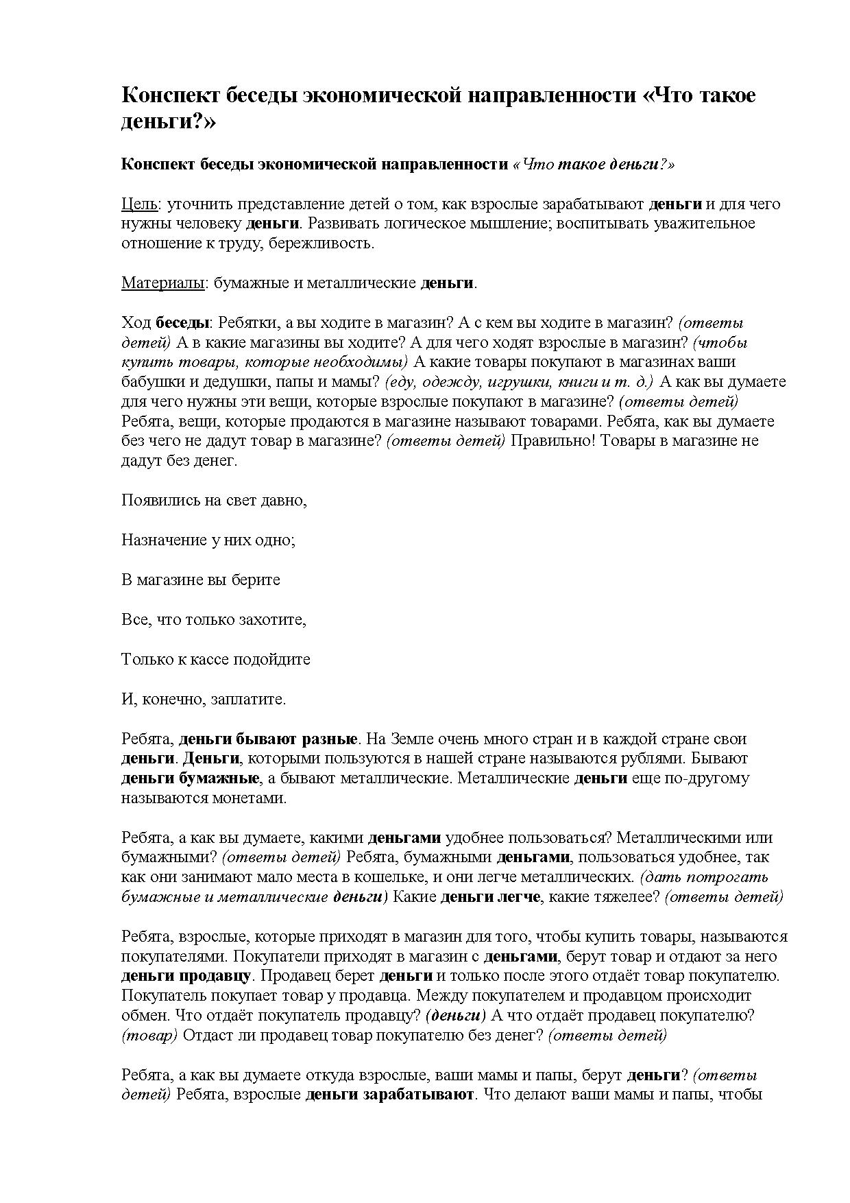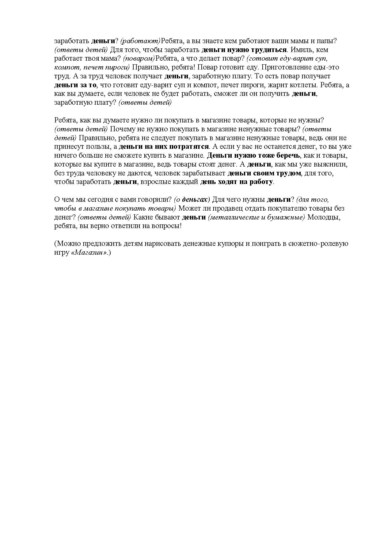 -уточнить представление детей о том, как взрослые зарабатывают деньги и для чего нужны человеку деньги,