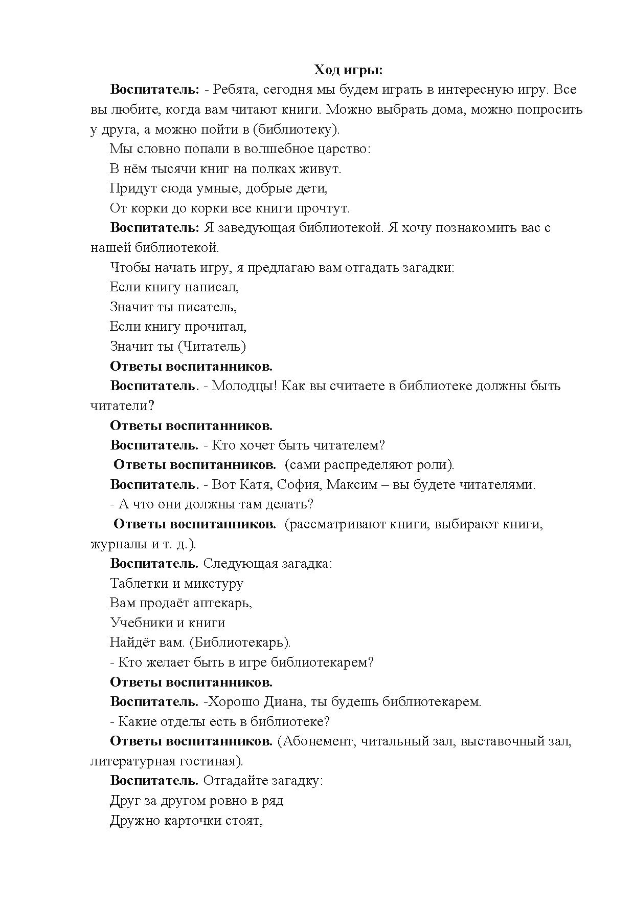 1. Развивать и обогащать сюжет игры «Библиотека».