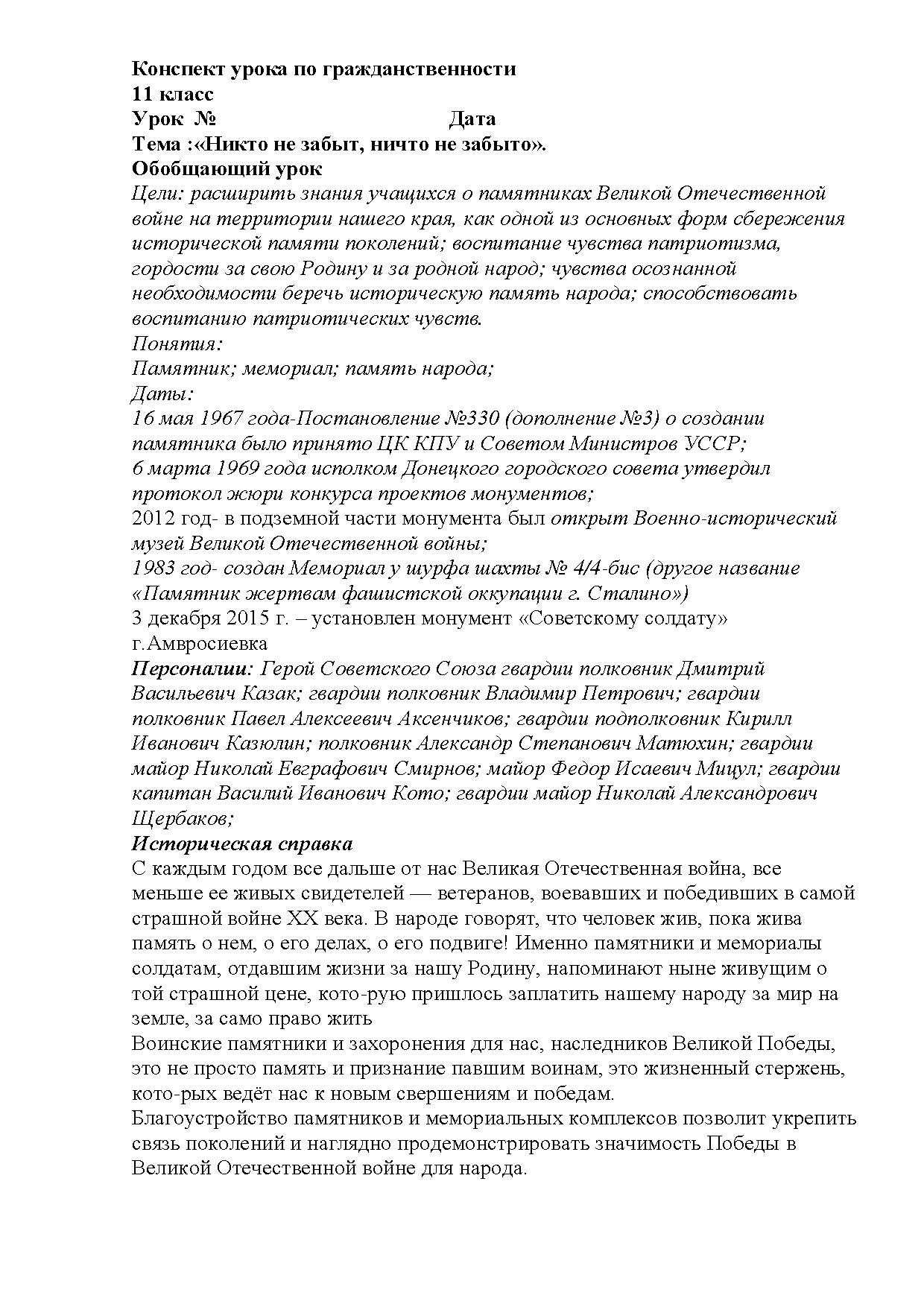 -чувства осознанной необходимости беречь историческую память народа;