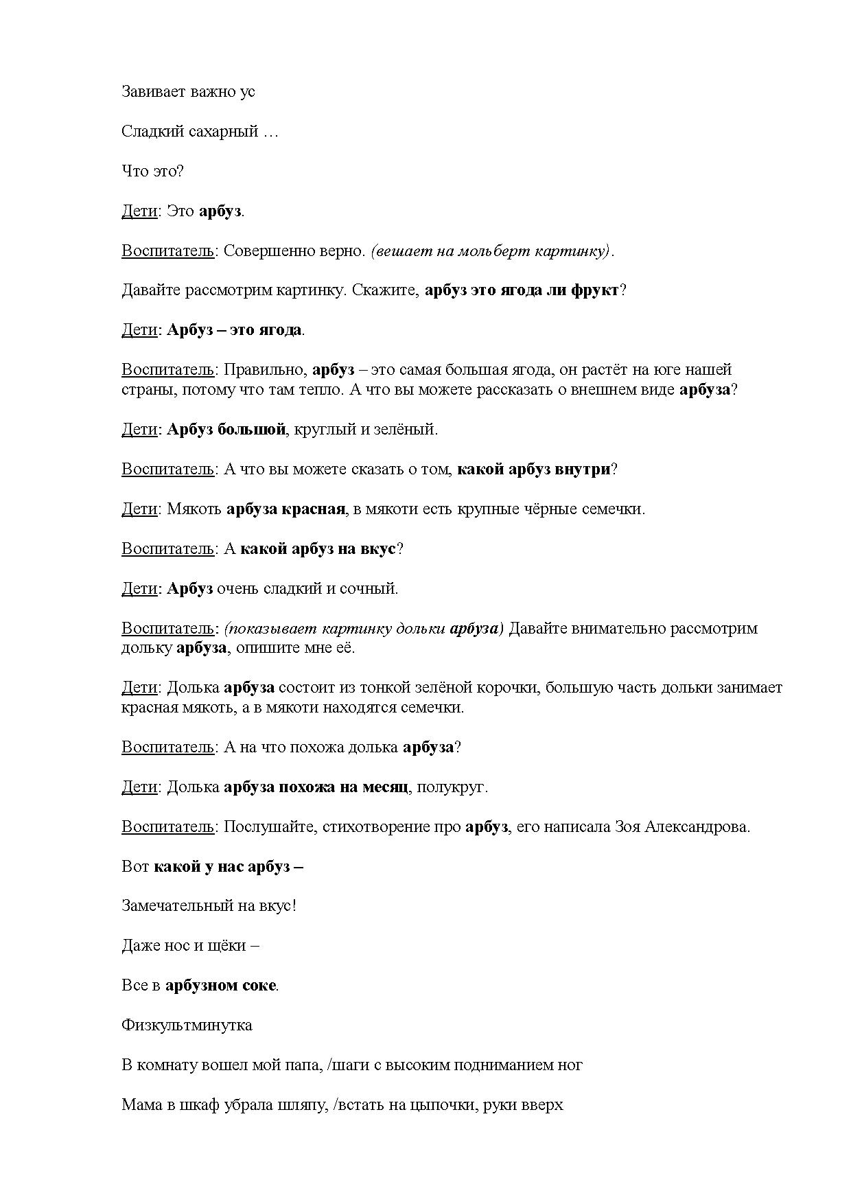 1. Познакомить с внешним видом арбуза.
