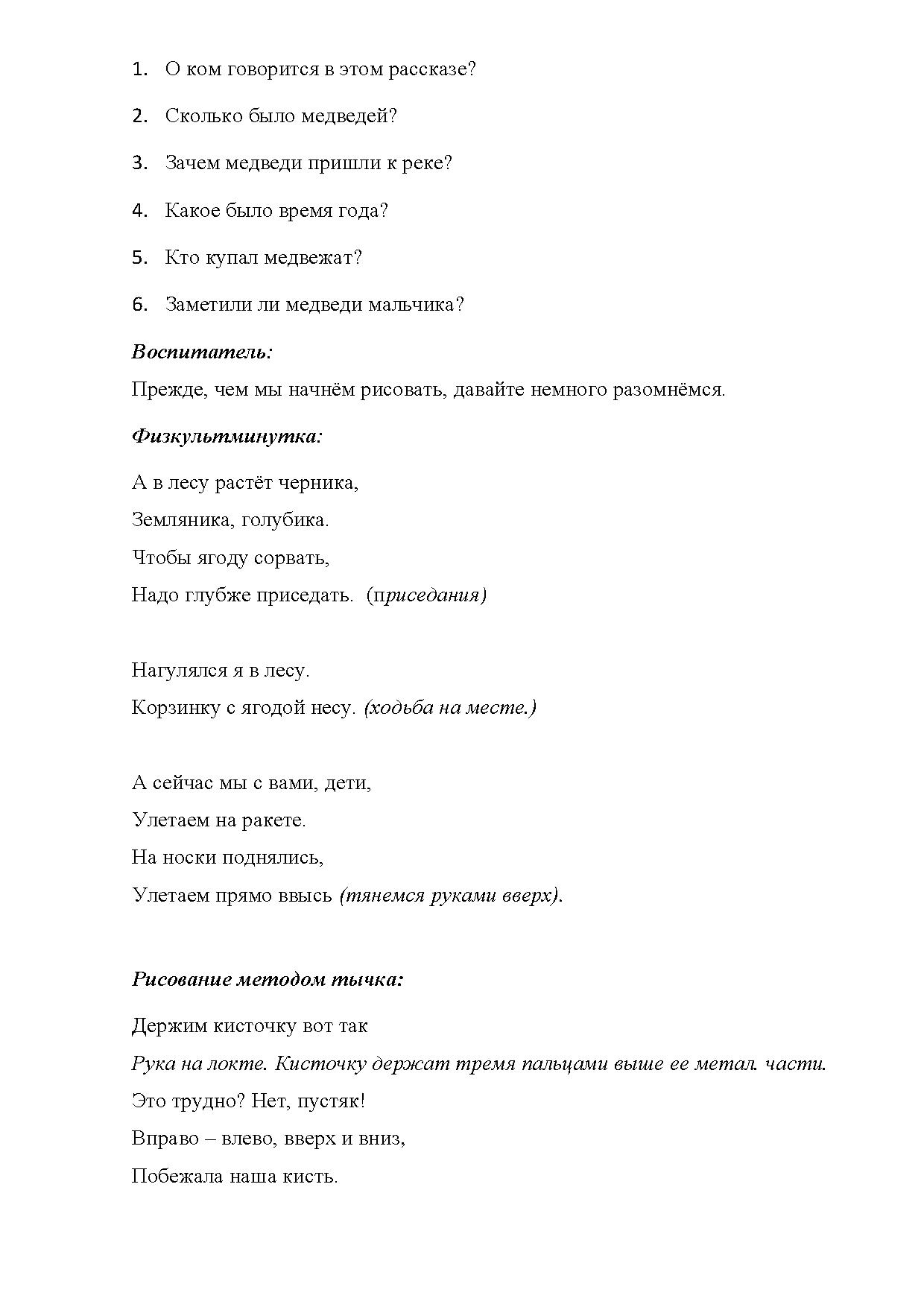 2. Учить детей рисовать гуашью и жёсткой кистью медвежонка методом тычка, передавая величину и пропорции частей тела.