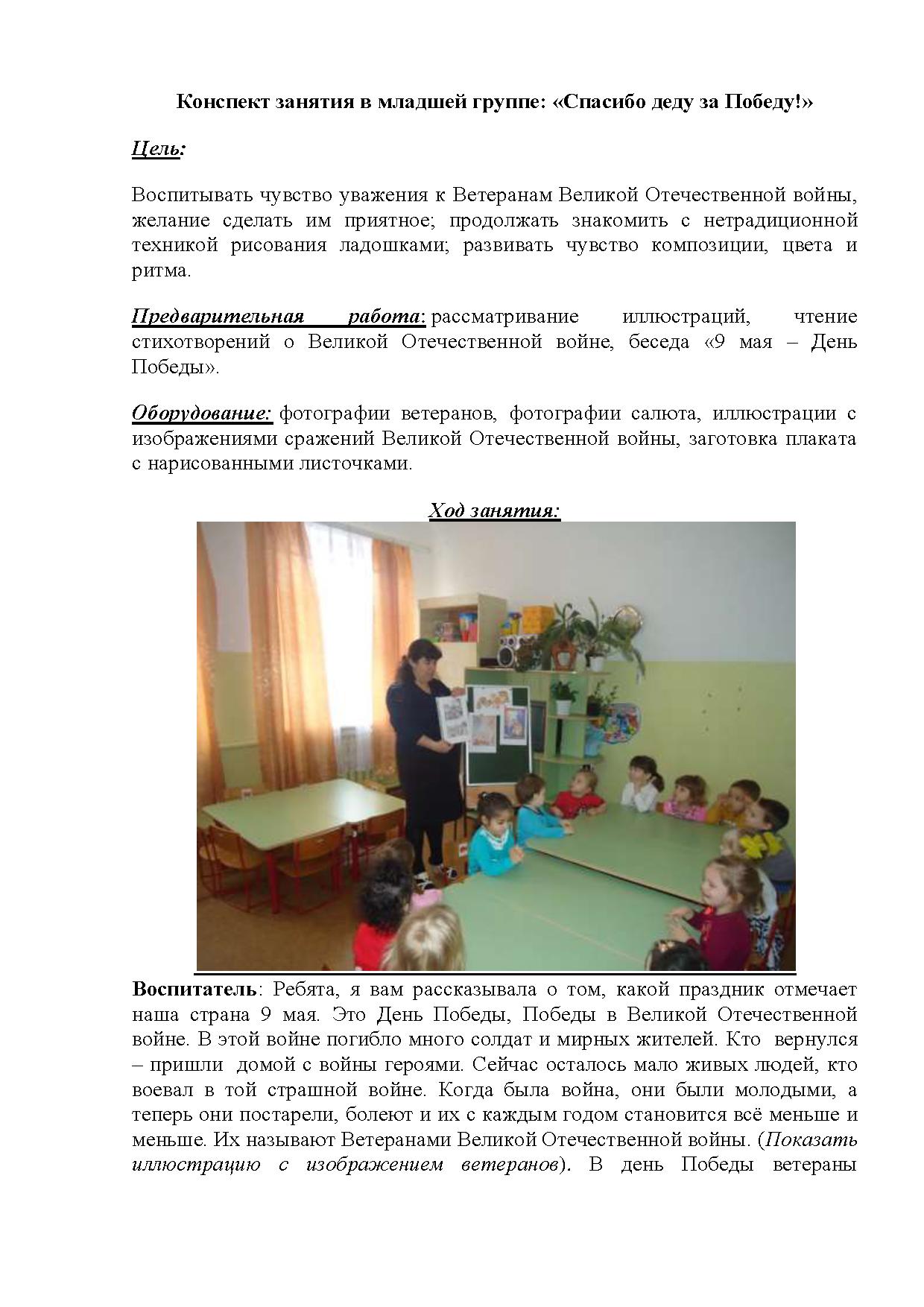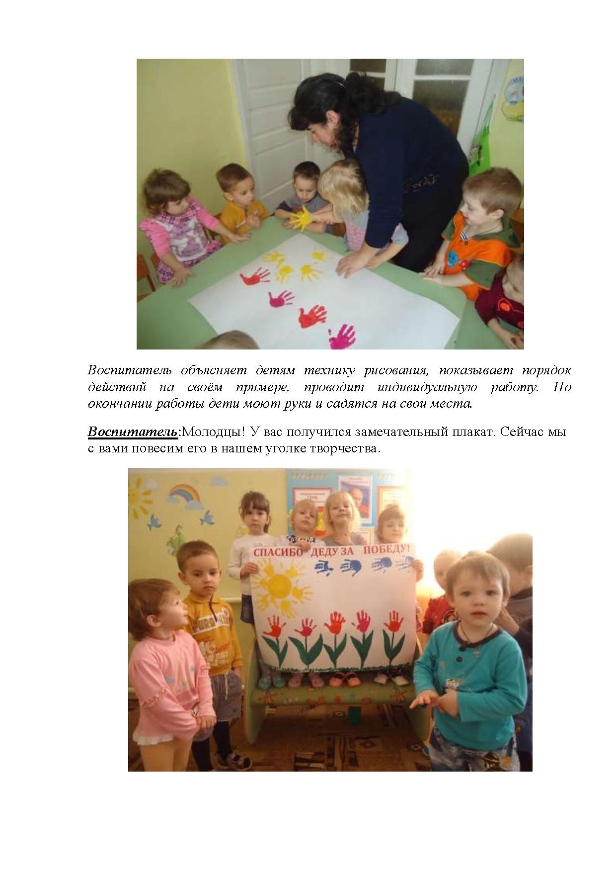 -воспитывать чувство уважения к Ветеранам Великой Отечественной войны, желание сделать им приятное; продолжать знакомить с нетрадиционной техникой рисования ладошками;