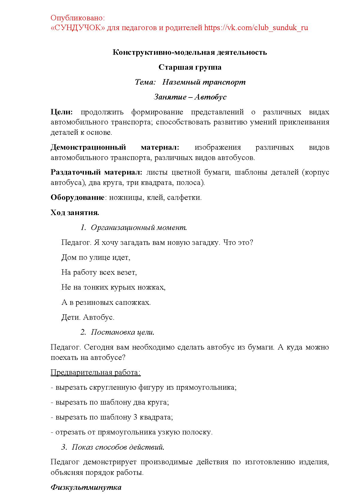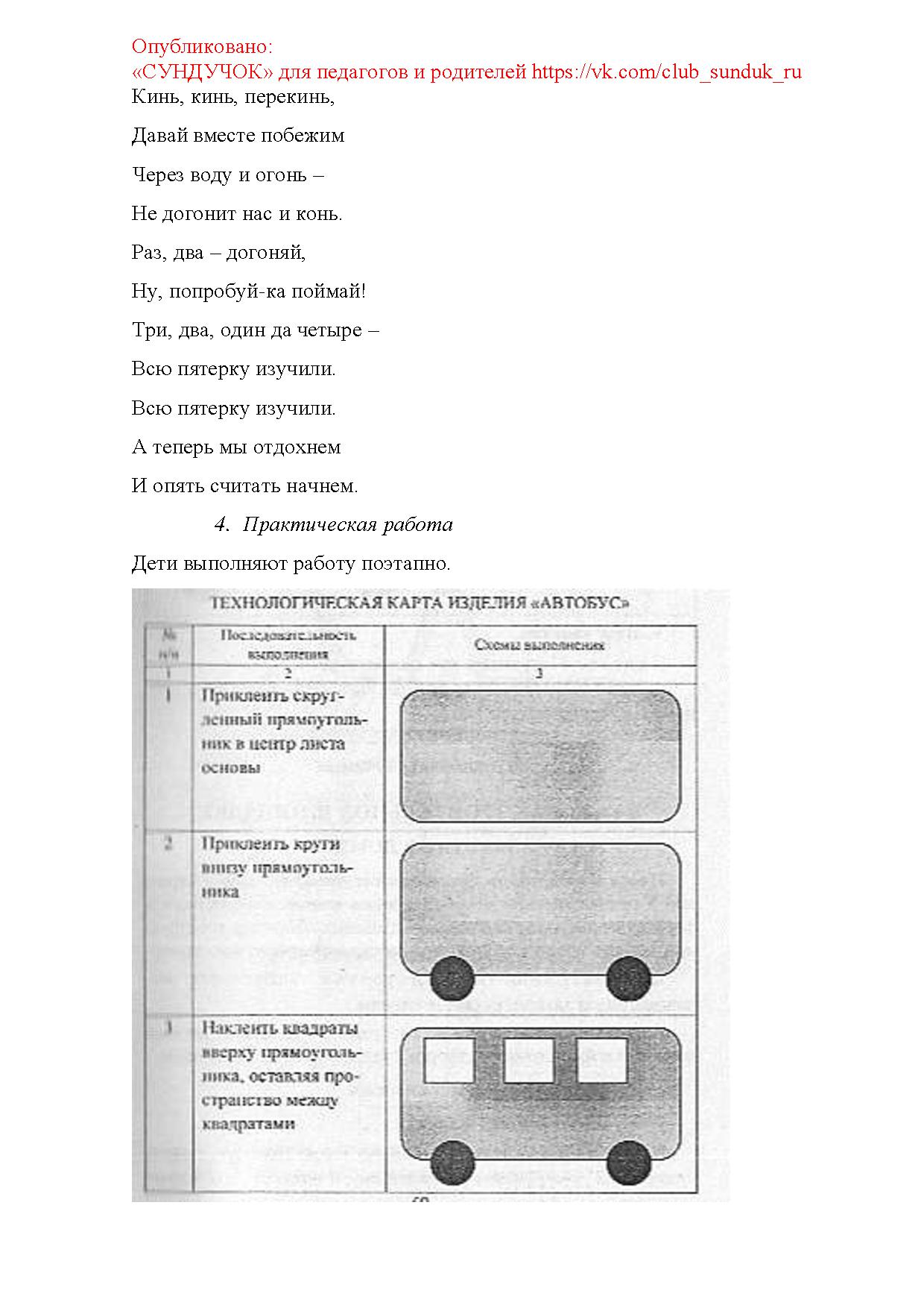 Цели: продолжить формирование представлений о различных видах автомобильного транспорта; способствовать развитию умений приклеивания деталей к основе.