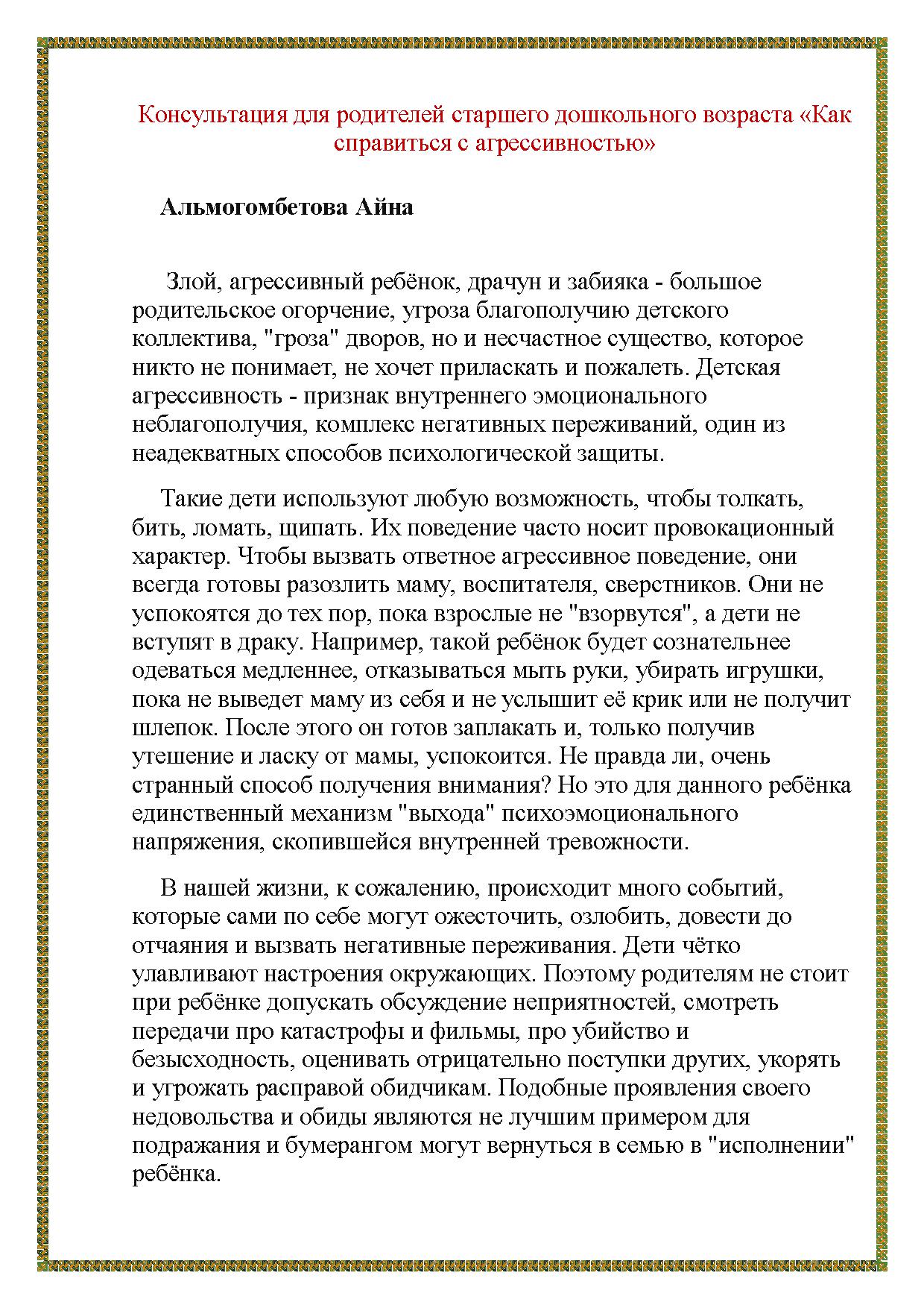 Детская агрессивность - признак внутреннего эмоционального неблагополучия, комплекс негативных переживаний, один из неадекватных способов психологической защиты.