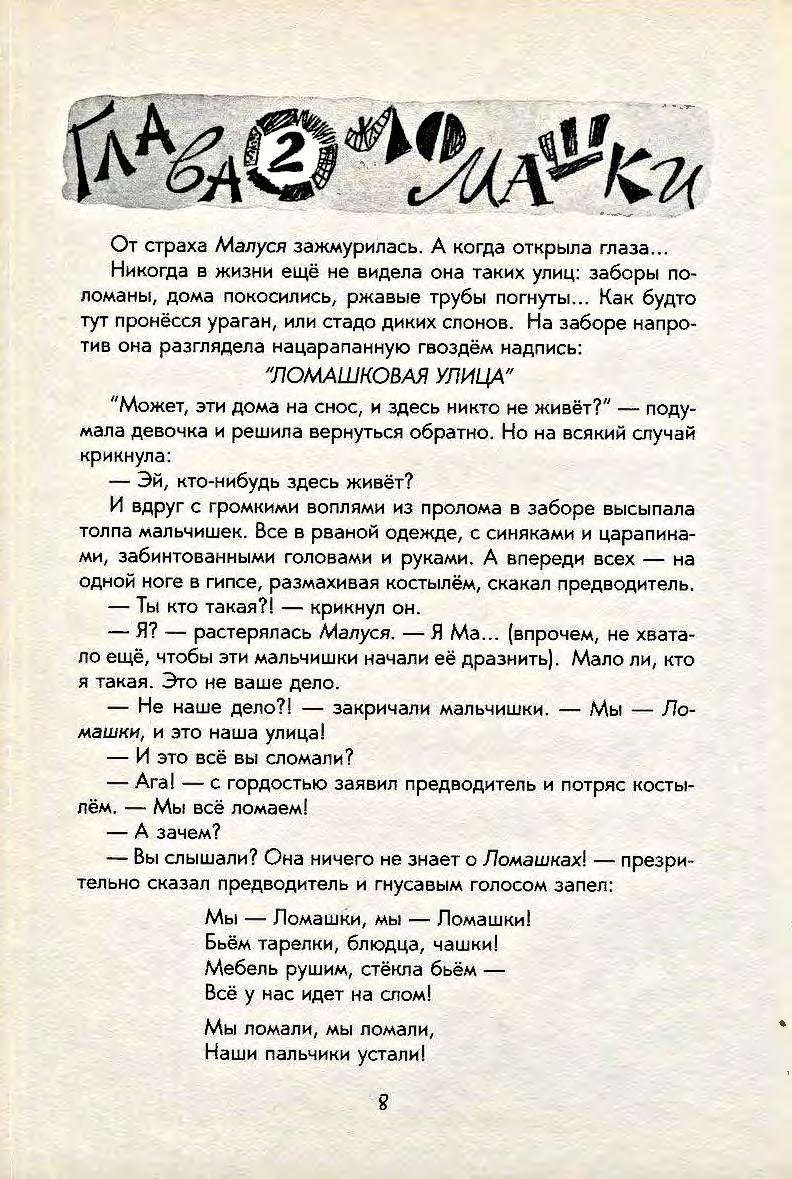 Обыкновенная девочка Маруся ужасно не любила ни с кем знакомиться, потому что, когда спрашивали её имя, приходилось отвечать: "Малуся". А однажды вместо Ромашковой улицы она оказалась в необыкновенной стране, где подружилась с коЛовой и моЛяком. Ещё много удивительного было в этой стране, где всем заправлял вовсе не безобидный таинственный волшебник.