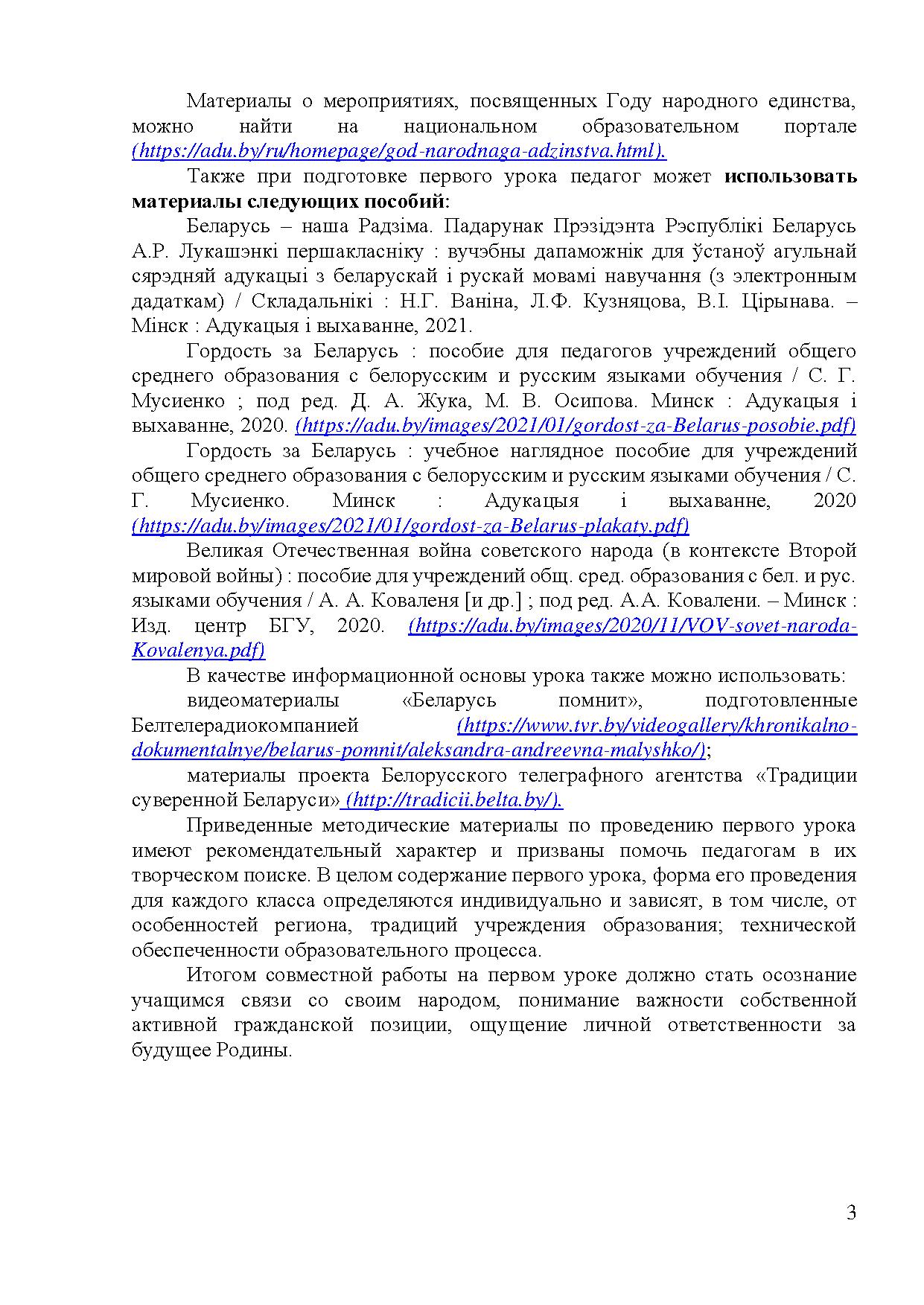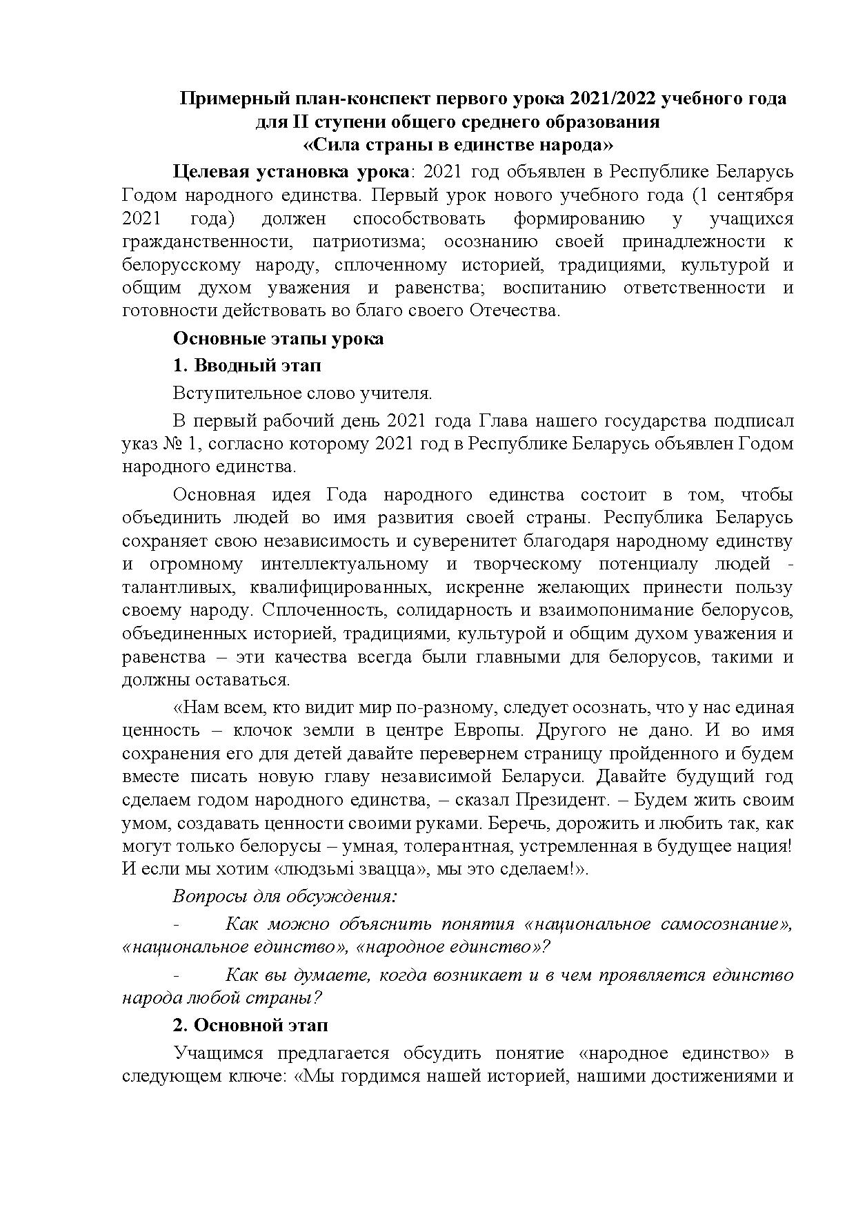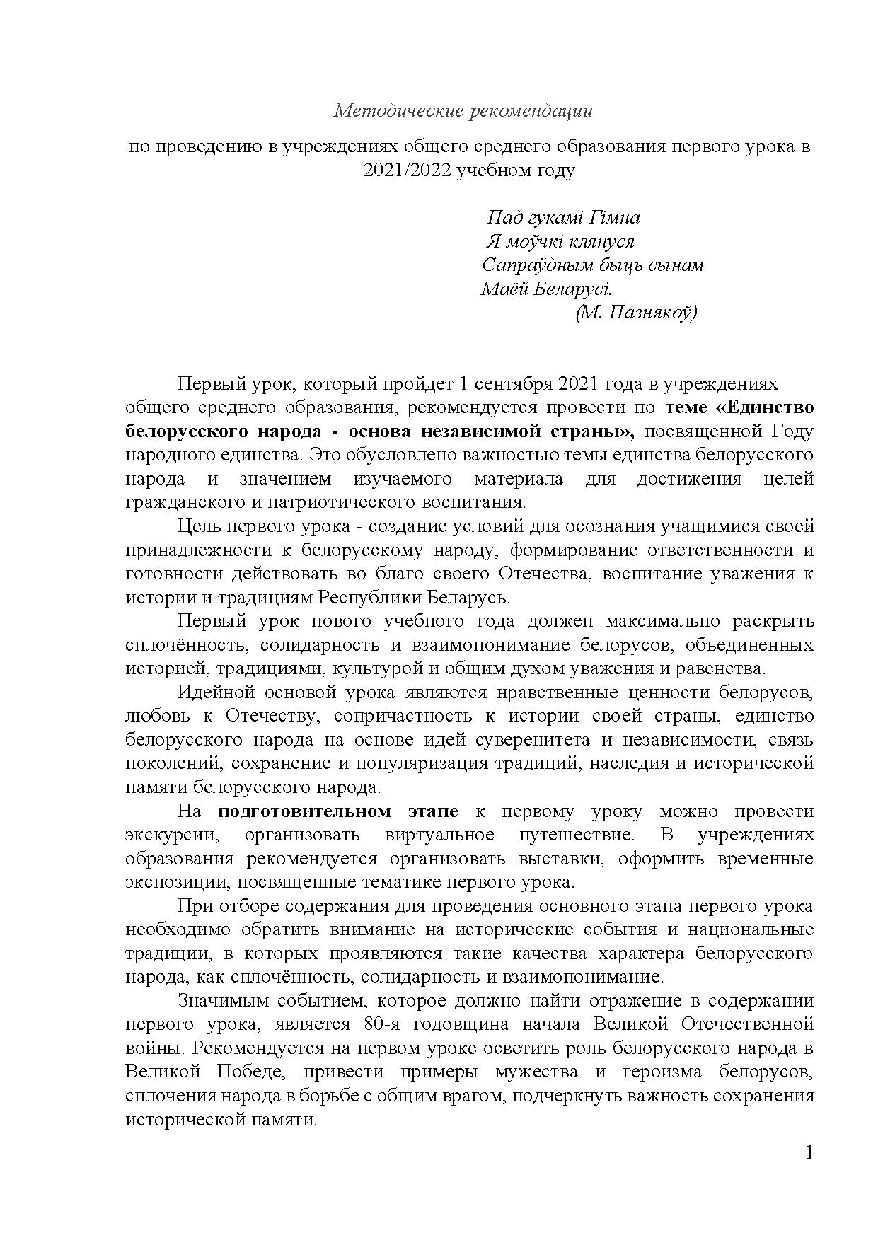 Цель первого урока - создание условий для осознания учащимися своей принадлежности к белорусскому народу, формирование ответственности и готовности действовать во благо своего Отечества, воспитание уважения к истории и традициям Республики Беларусь.