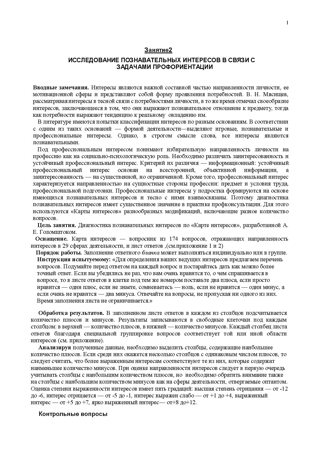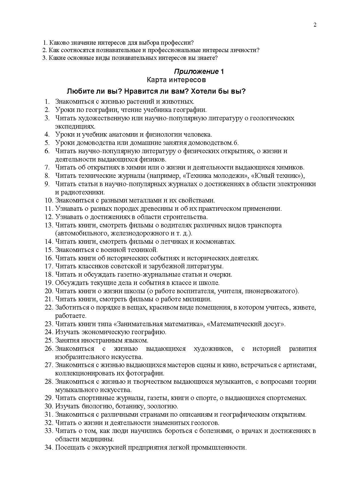 Под профессиональным интересом понимают избирательную направленность личности на профессию как на социально-психологическую роль. Необходимо различать заинтересованность и устойчивый профессиональный интерес. Критерий их различия — информационный: устойчивый профессиональный интерес основан на всесторонней, объективной информации, а заинтересованность — на существенной, но ограниченной. Кроме того, профессиональный интерес характеризуется направленностью на сущностные стороны профессии: предмет и условия труда, профессиональной подготовки. Профессиональные интересы у подростка формируются на основе имеющихся познавательных интересов и тесно с ними взаимосвязаны. Поэтому диагностика познавательных интересов имеет существенное значение в практике профконсультации. Для этого используются «Карты интересов» разнообразных модификаций, включающие разное количество вопросов.