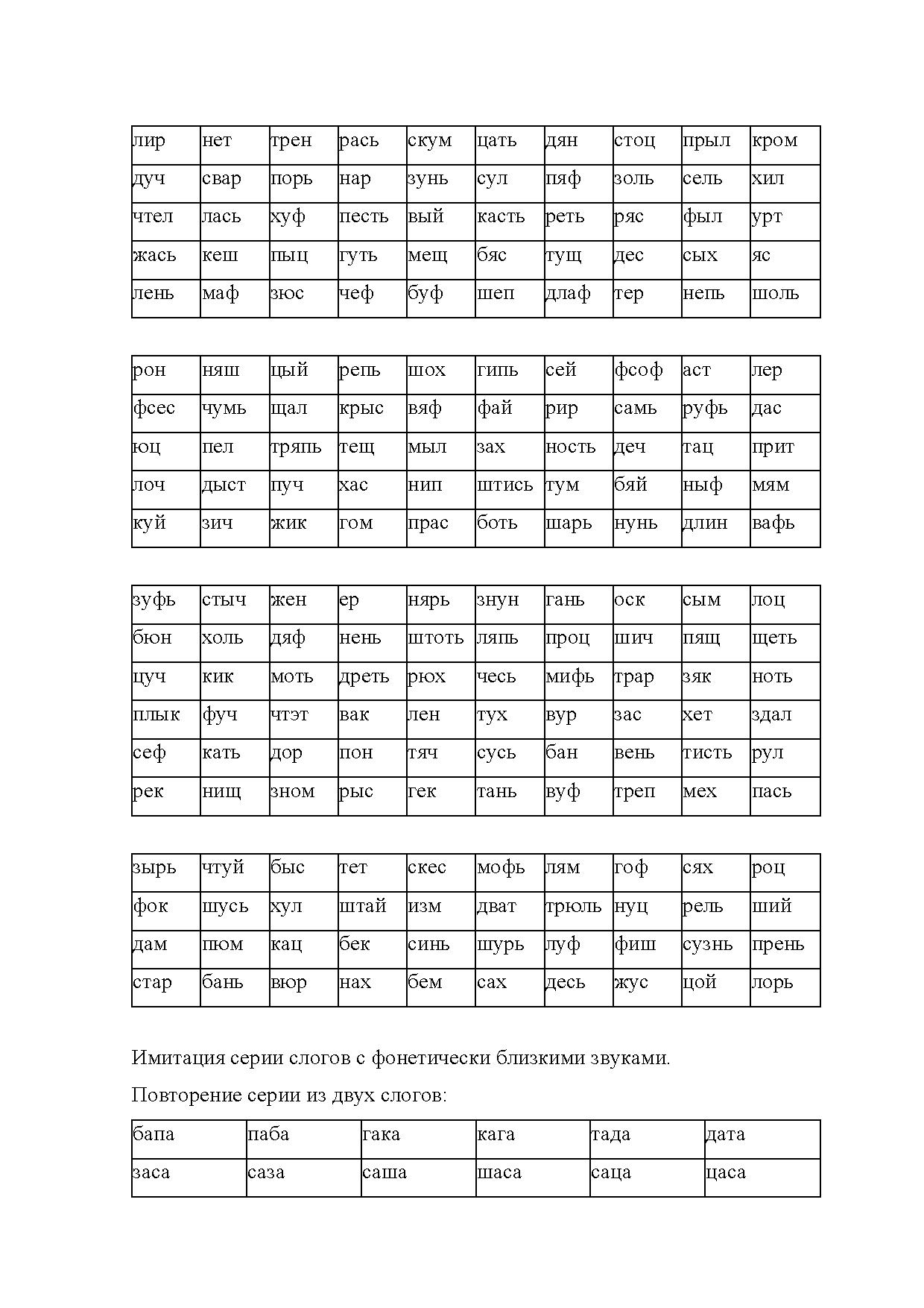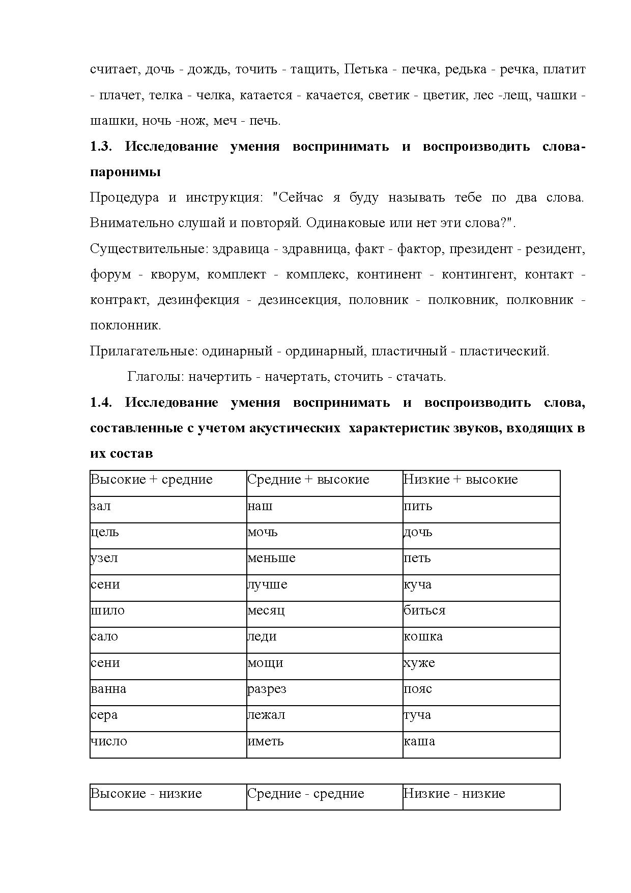 Вторая — включает комплексы заданий, позволяющих определить особенности восприятия ритмических и структурных характеристик слова (на основе предъявления на слух слогов, слов и квазислов).