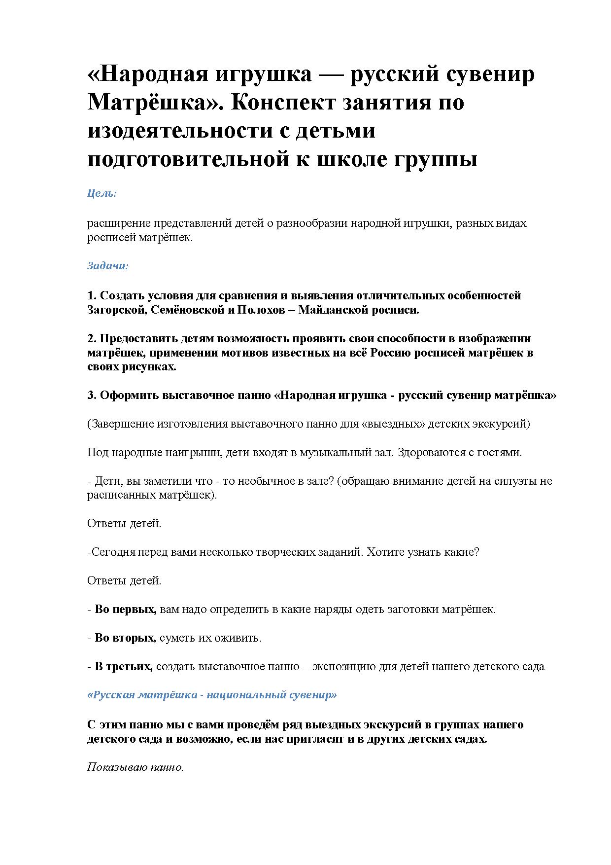 3. Оформить выставочное панно «Народная игрушка - русский сувенир матрёшка».